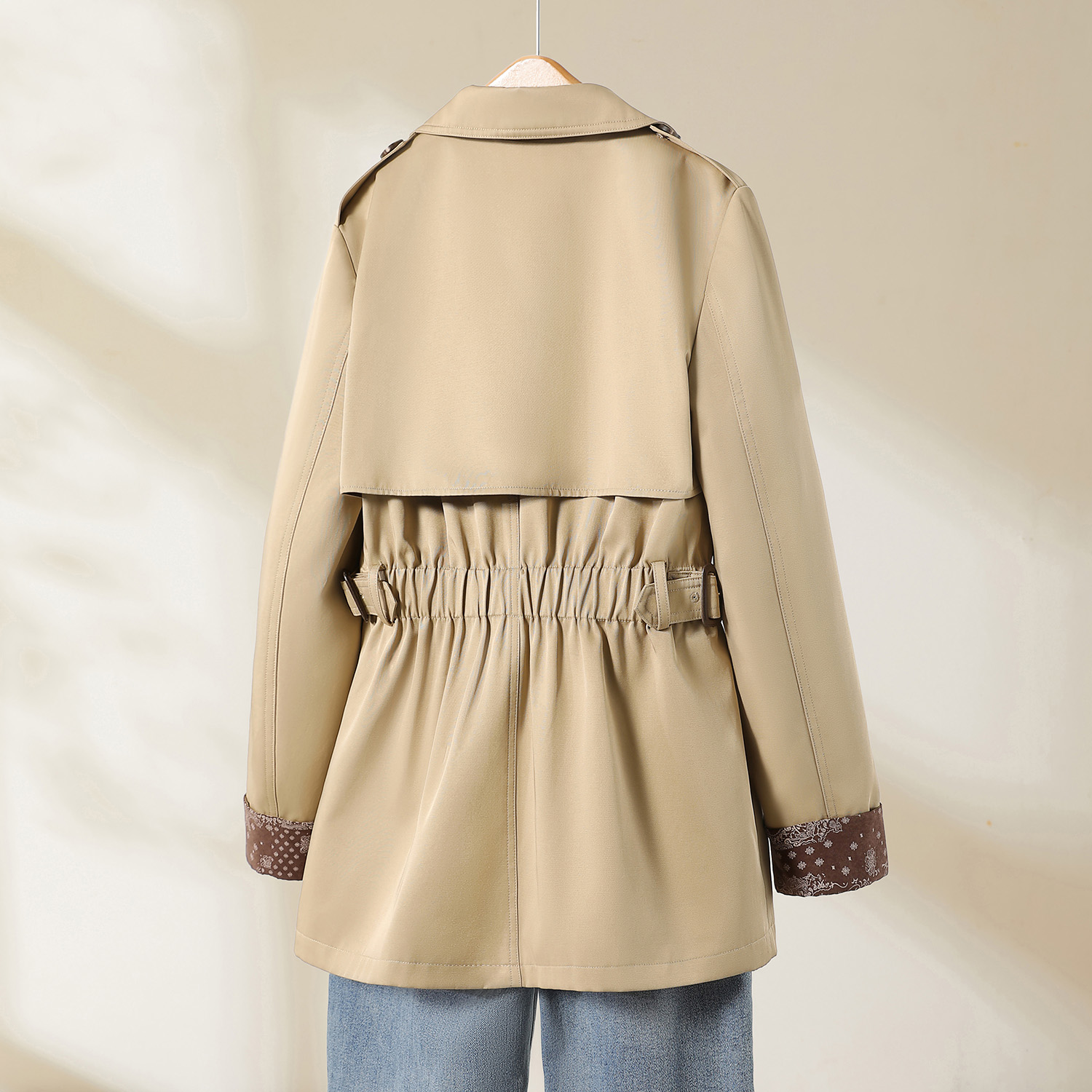 YBAI/亦白 25秋季新款时尚百搭翻领双排扣牛筋收腰显瘦风衣外套女