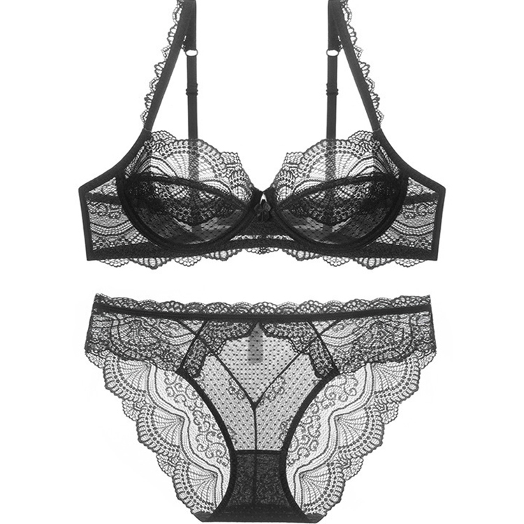 维多利亚黑色蕾丝内衣薄款女夏性感胸罩纯欲风胸衣软钢圈文胸套装