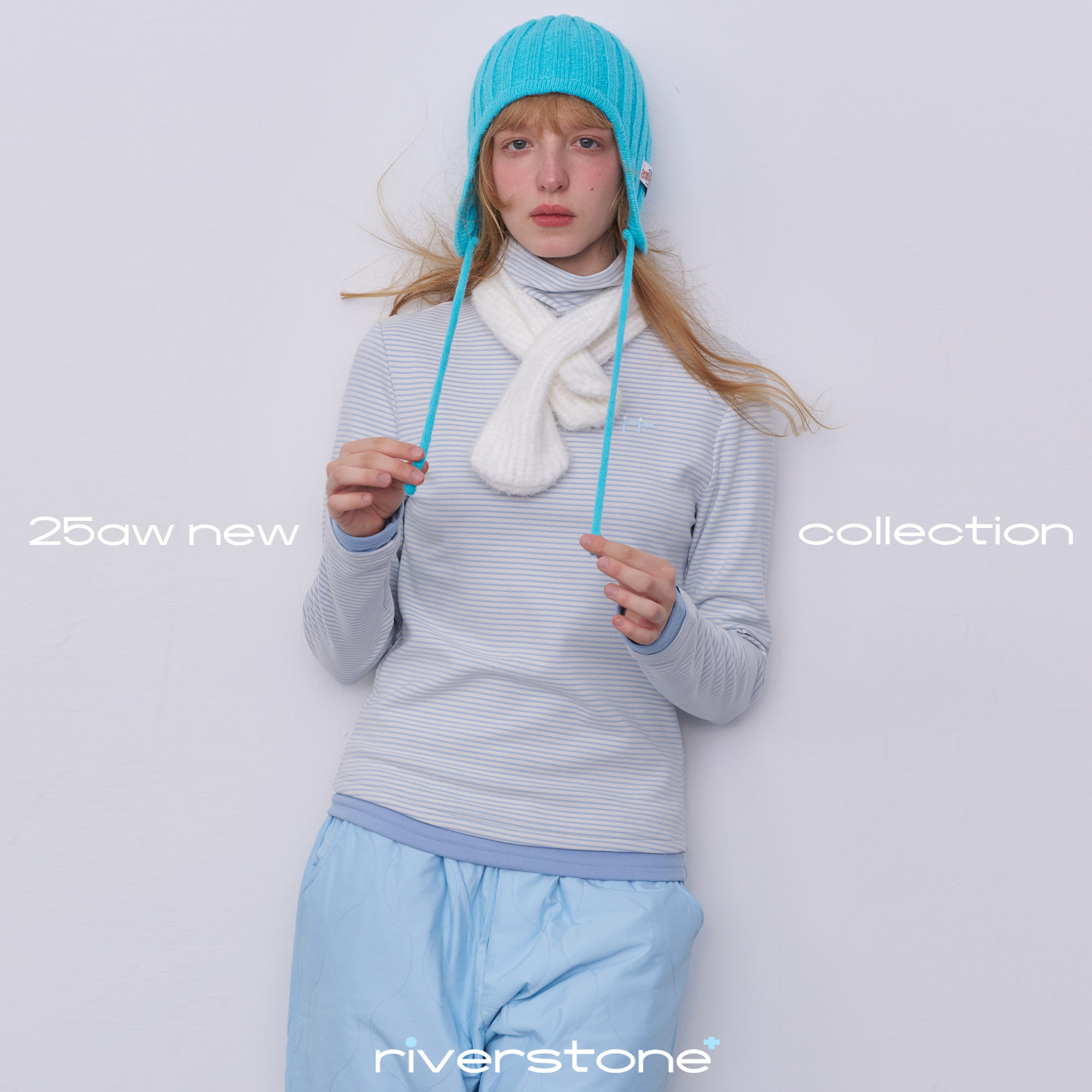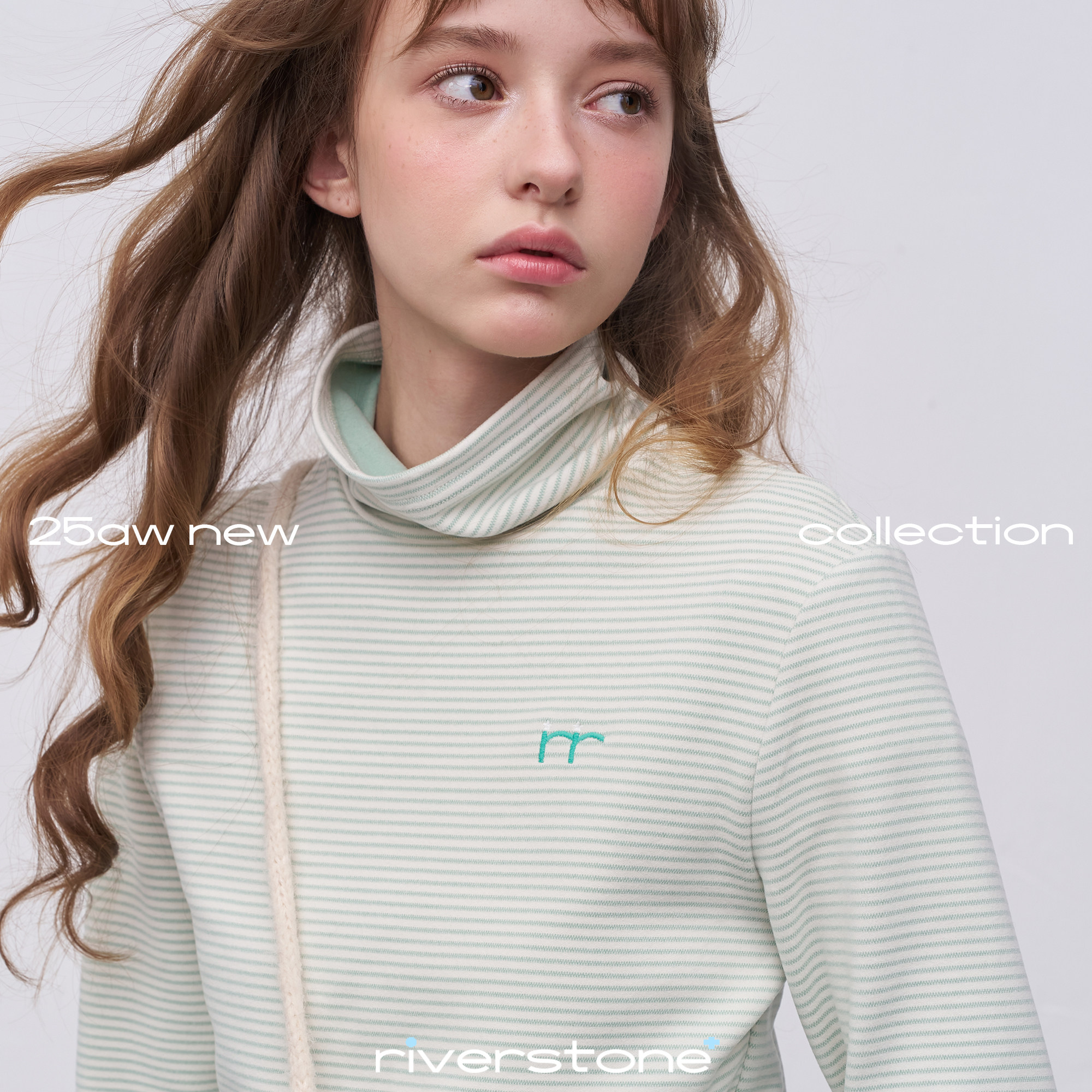 riverstone plus毛茸茸高领条纹长袖T恤女冬季百搭加厚打底衫上衣
