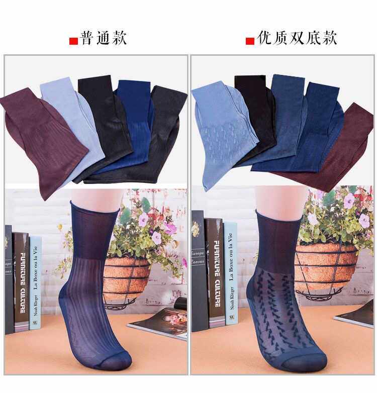 男士丝袜锦纶中老年人松口尼龙袜中筒夏季超薄冰丝袜子男短丝光袜