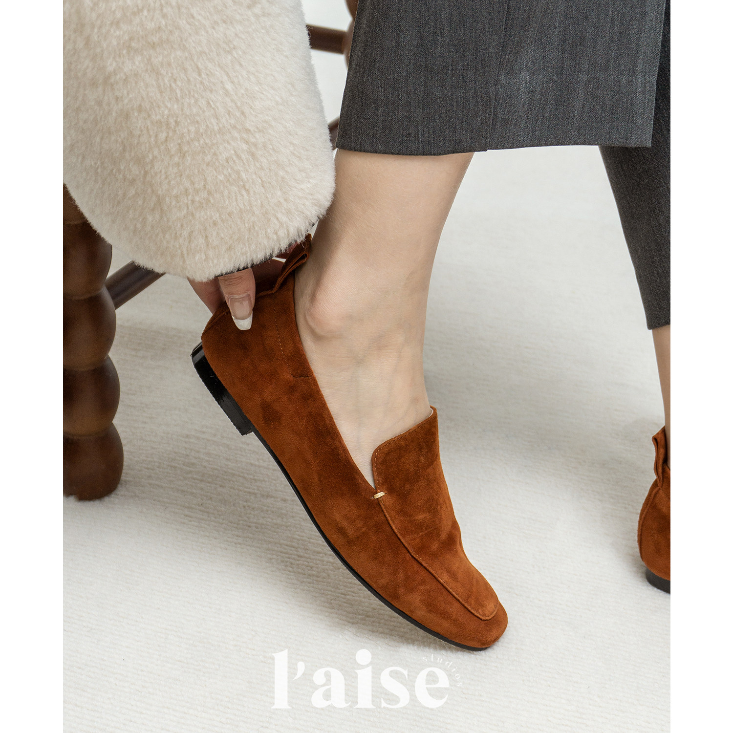 L'aise美拉德秋冬BI入软底乐福鞋