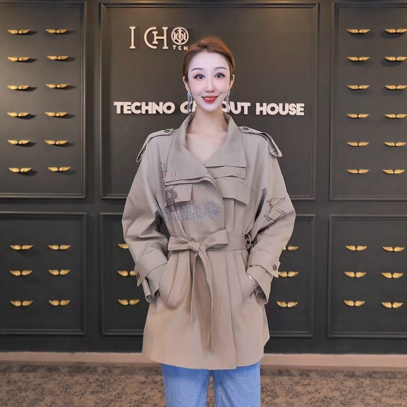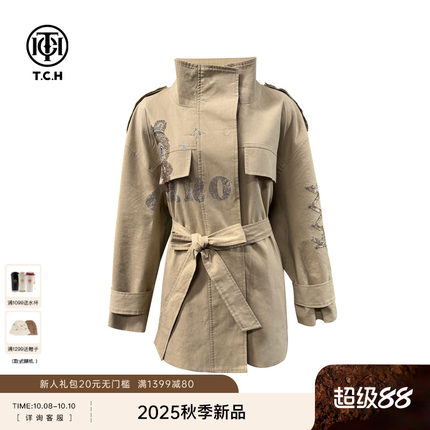 TCH私服烫钻时尚百搭气质中长款风衣外套女25秋季新款T75C15E5002