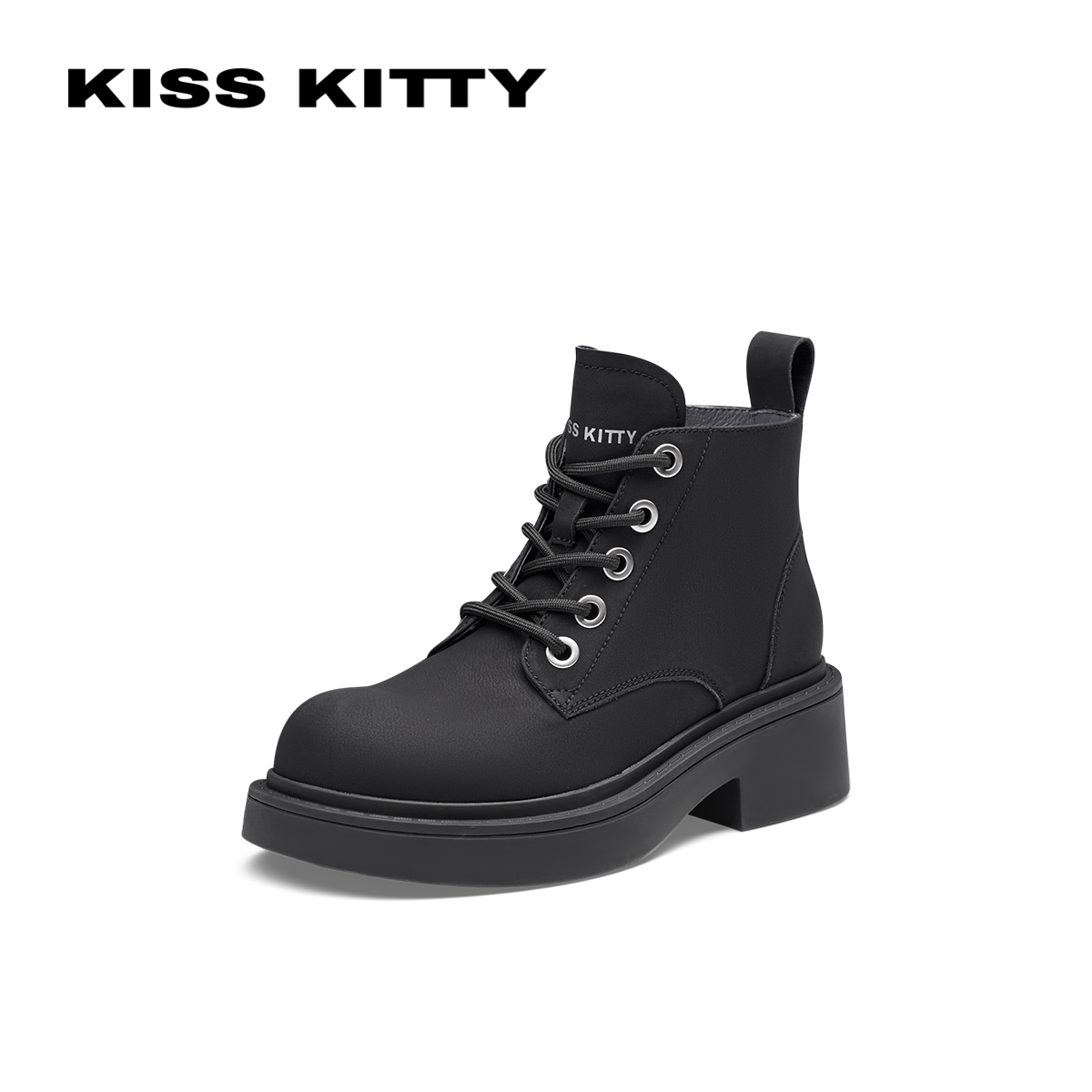 KISSKITTY秋冬新款牛皮户外马丁靴厚底前系带大黄靴女SA43748-36