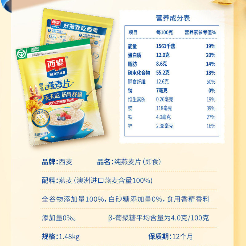西麦纯燕麦片营养早餐即食冲饮速食代餐饱腹食品营养谷物