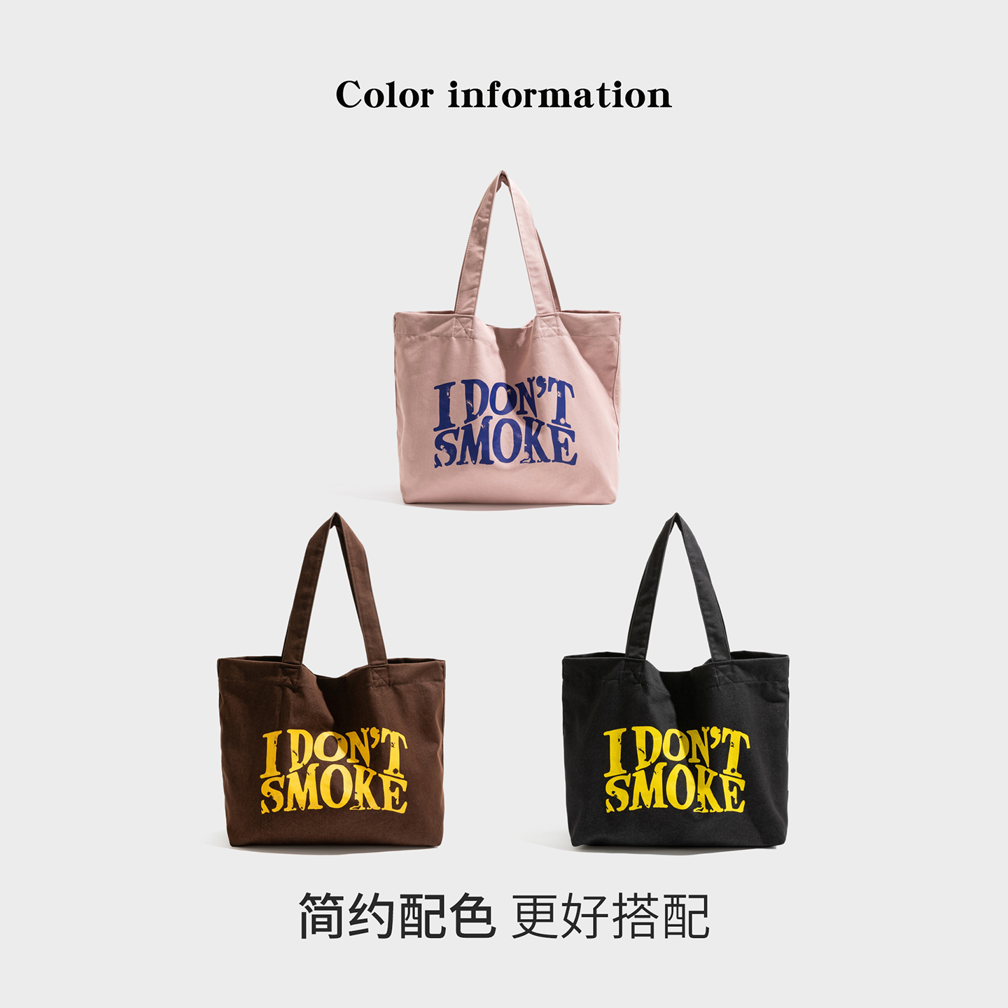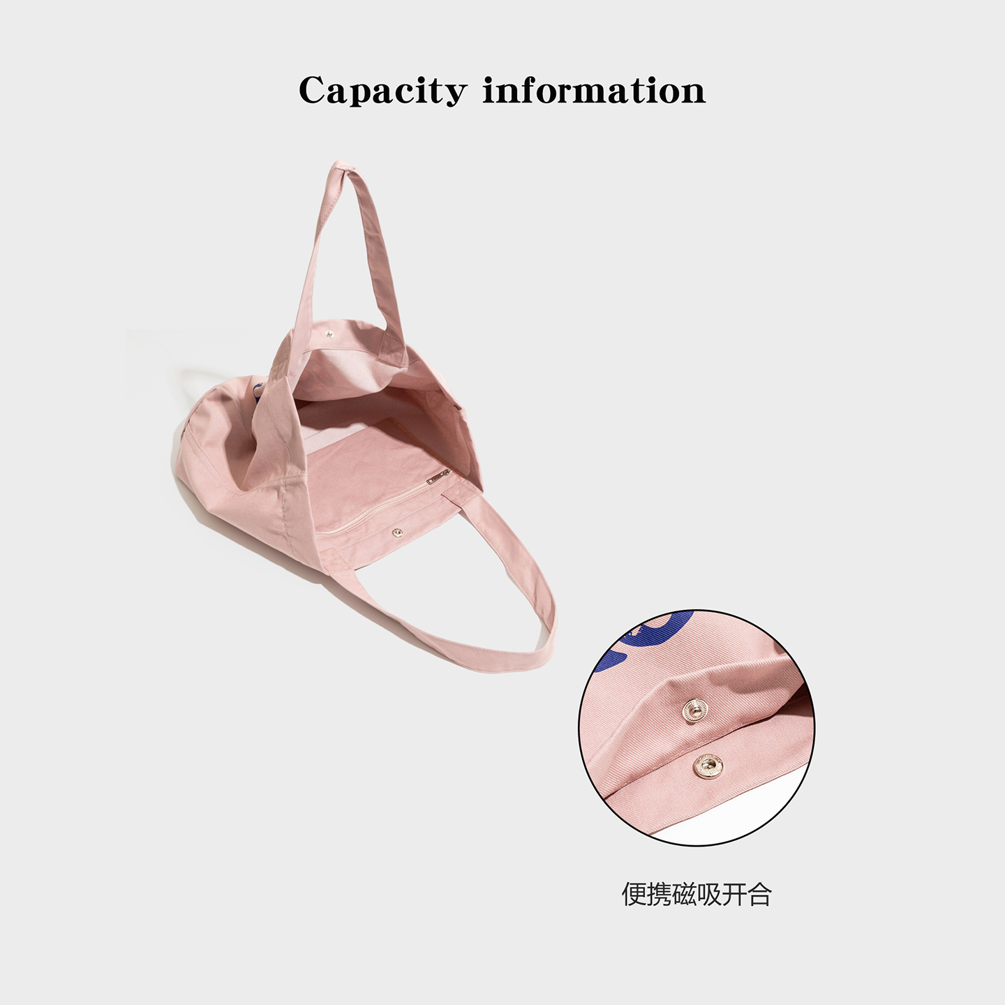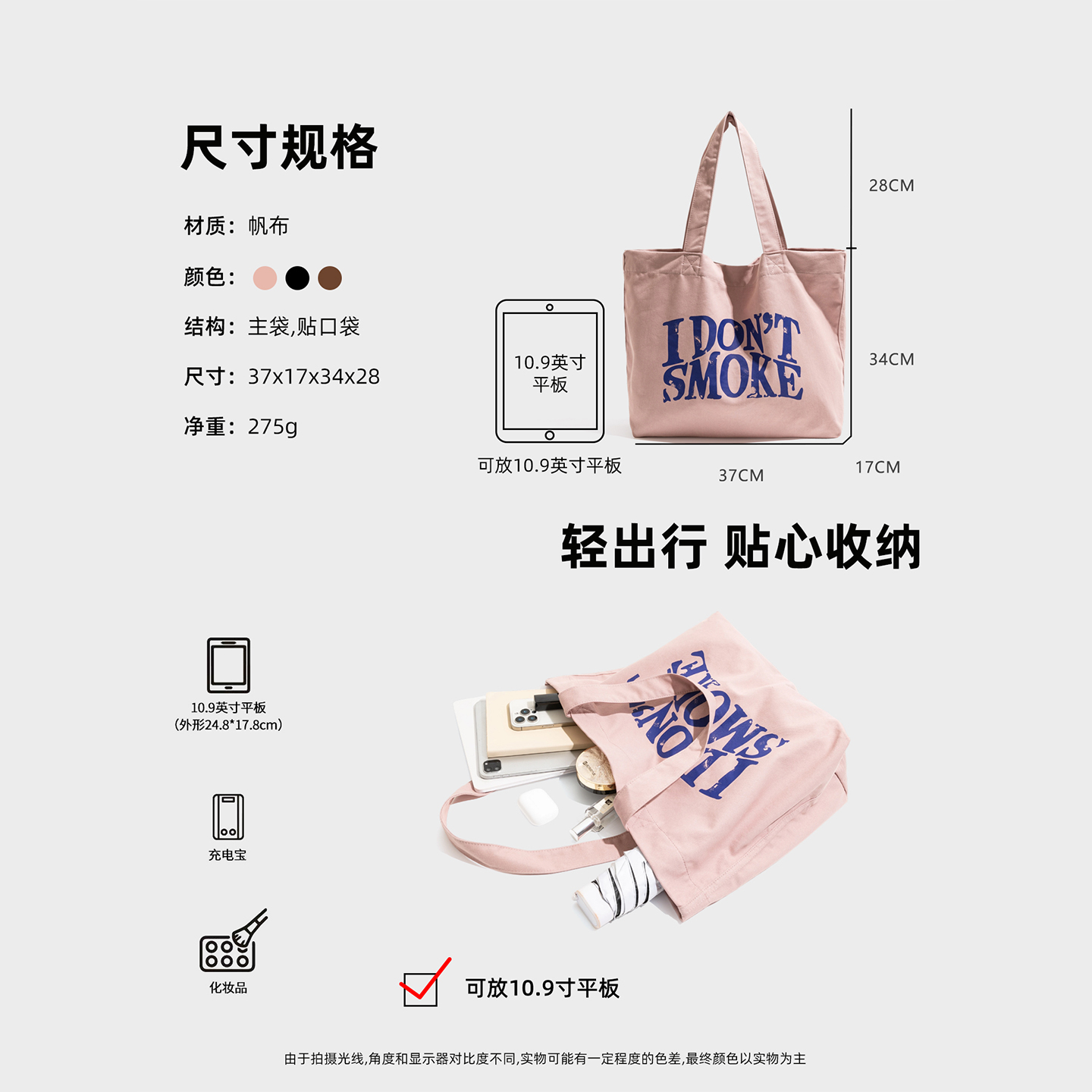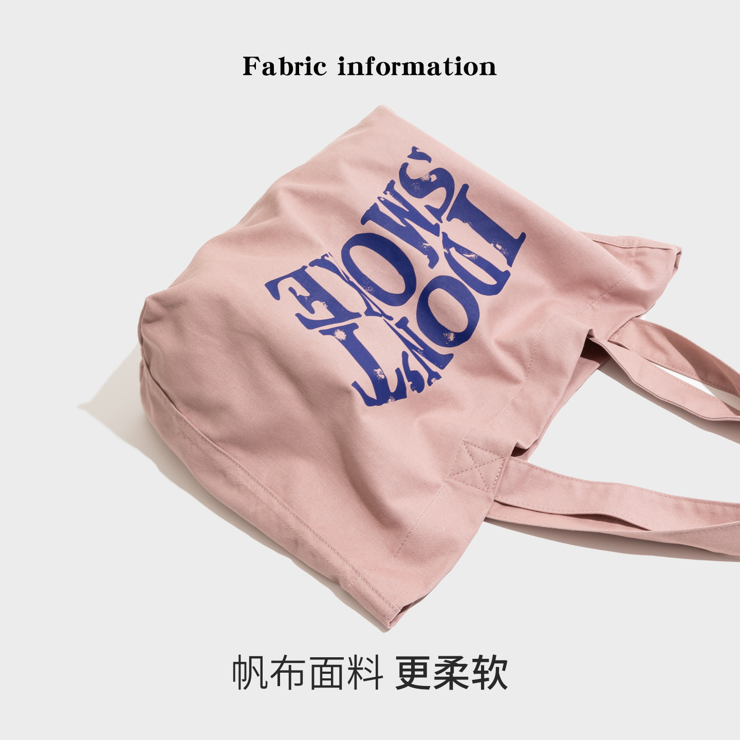 橙子少女韩系撞色帆布印花粉色女包2025秋冬手提包牛仔单肩托特包