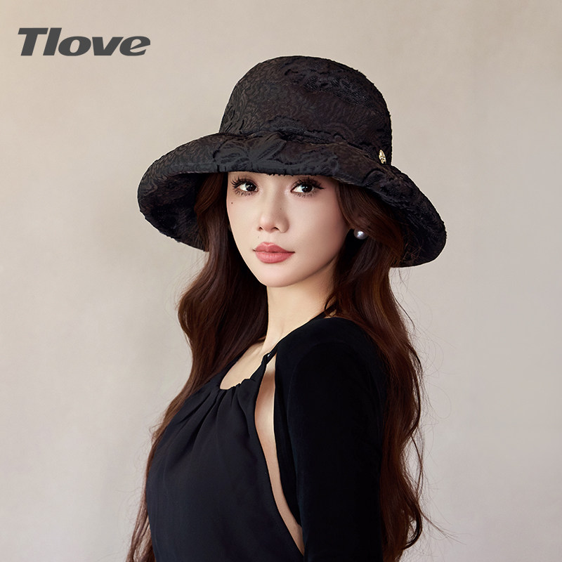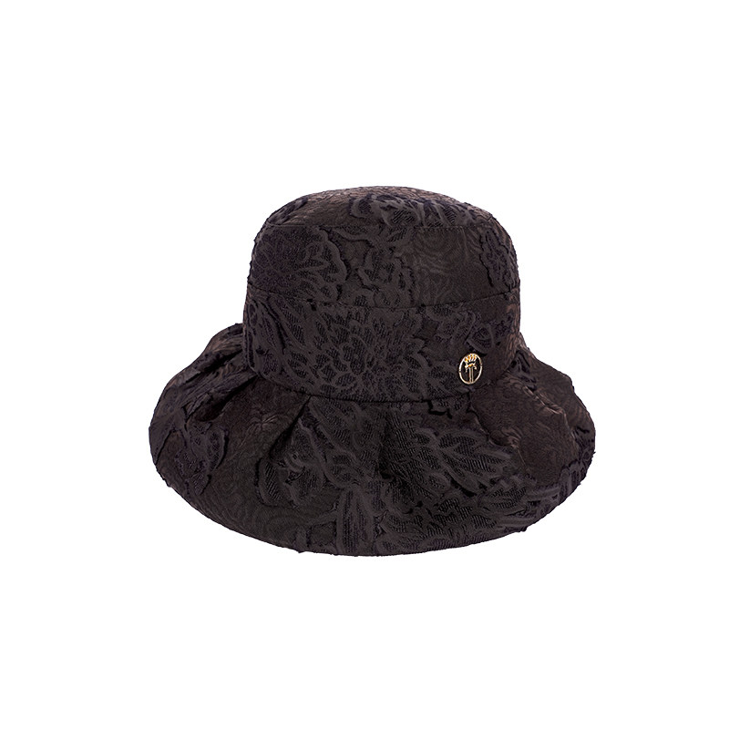 6894时尚百搭渔夫帽大檐遮阳防晒帽女士春夏天新冠乐绉桑蚕丝帽子