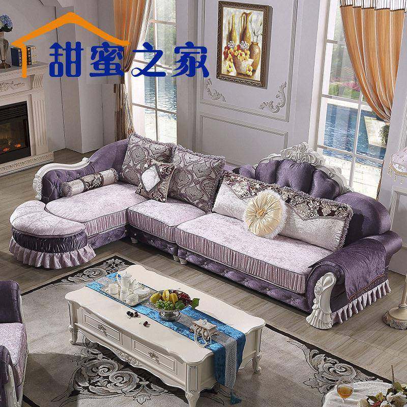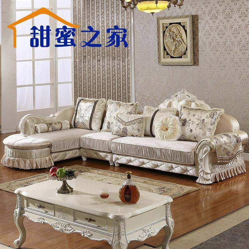 欧式科技布艺沙发客厅组合实木雕花小户型转角可拆洗简单欧式沙发