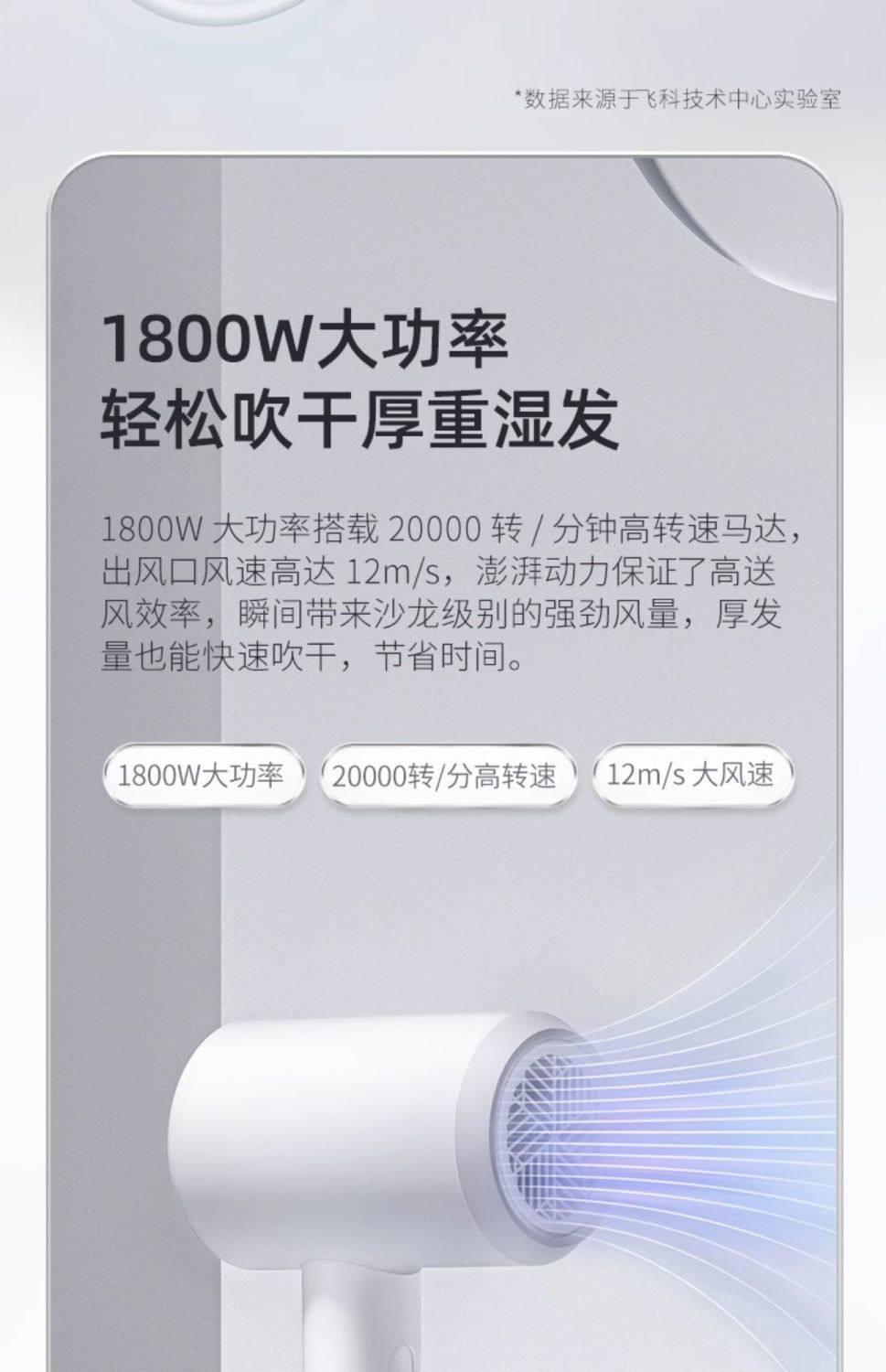 飞科吹风机家用吹风高转速大功率负离子护发学生宿舍恒温冷热1800