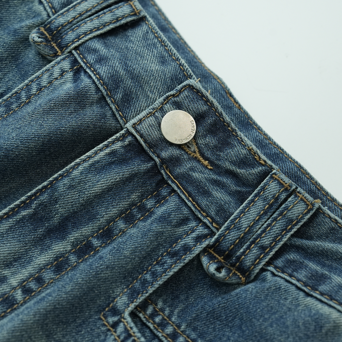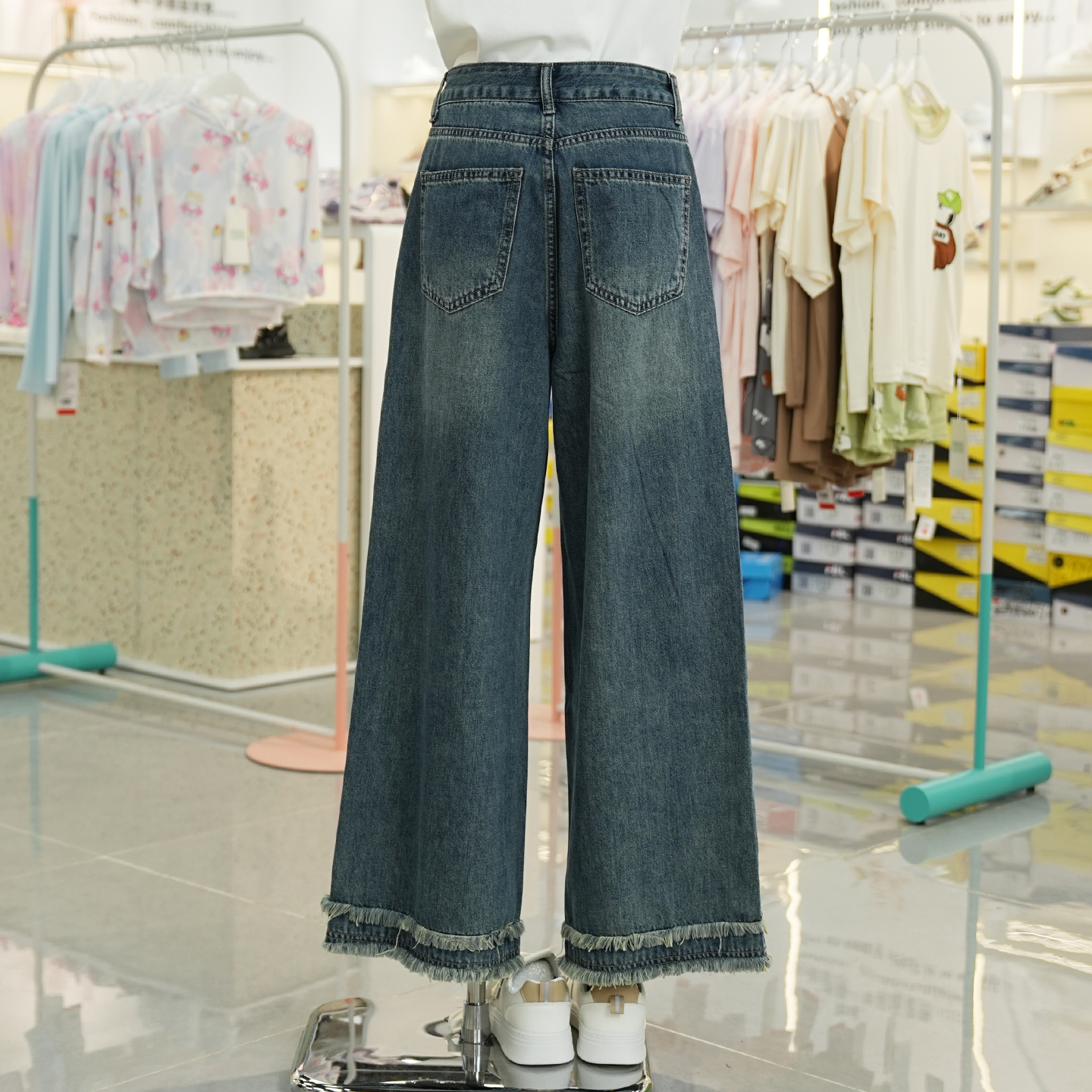 2025秋季复古牛仔裤百搭宽松直筒女脚口毛须设计遮肉阔腿裤长裤子