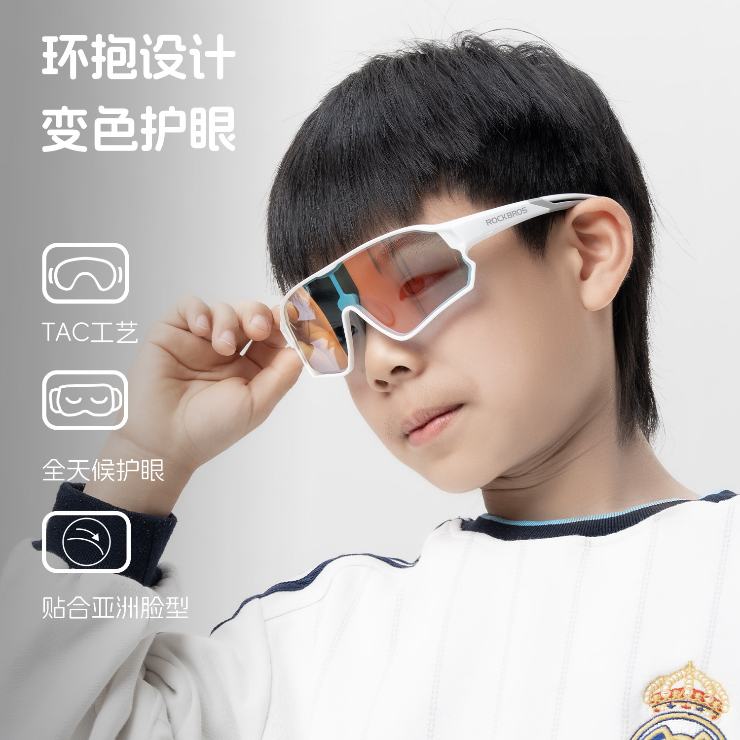 洛克兄弟儿童骑行眼镜偏光变色防风沙自行车男女孩防雾运动护目镜