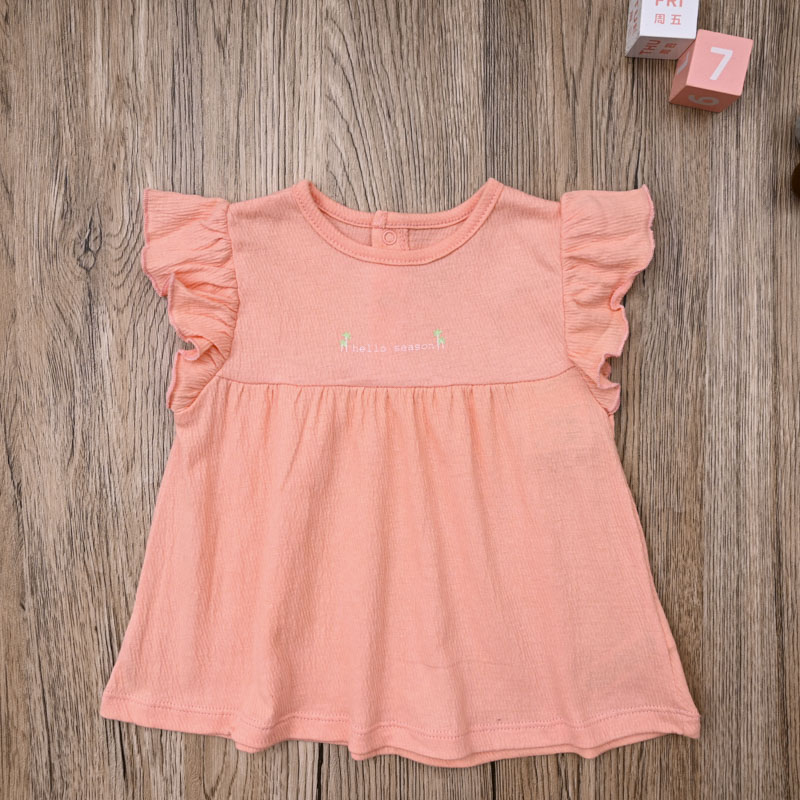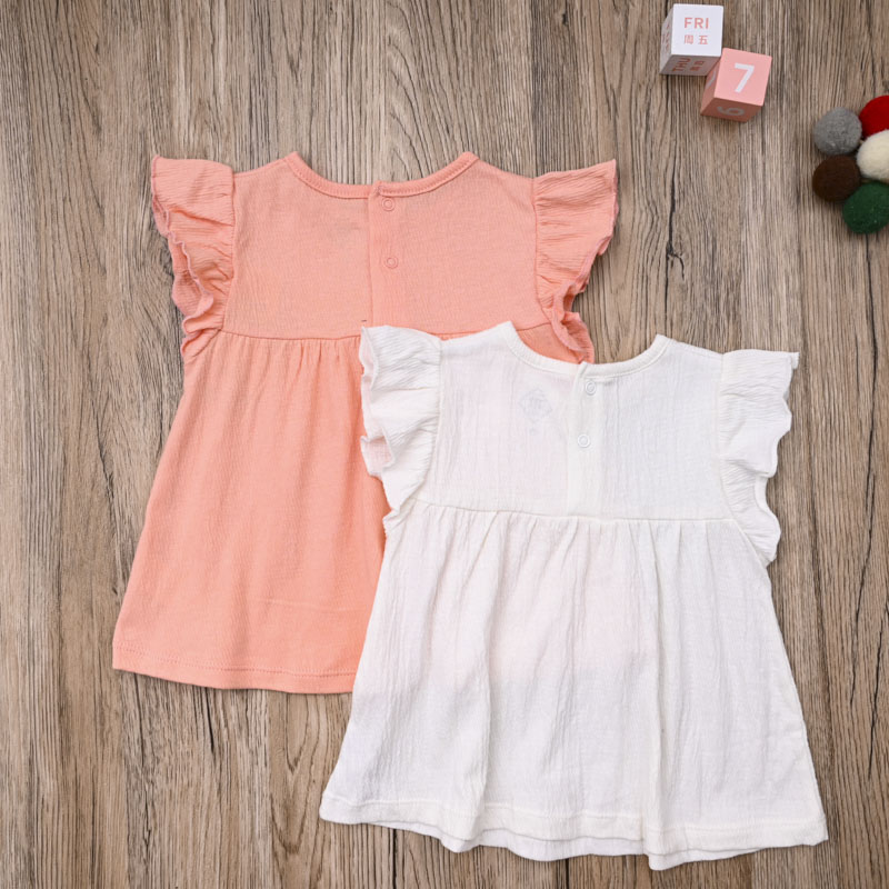 外贸欧美女宝夏款棉质短袖T恤裙式上衣 女童可爱飞袖套头衫娃娃衫