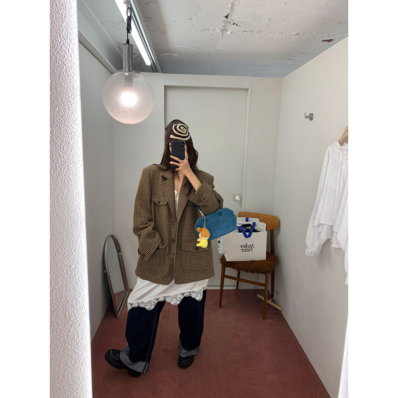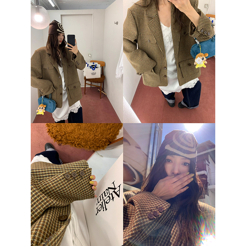 牙套大汪【富士西装】外套女春季2025新款百搭气质毛呢女格子外套
