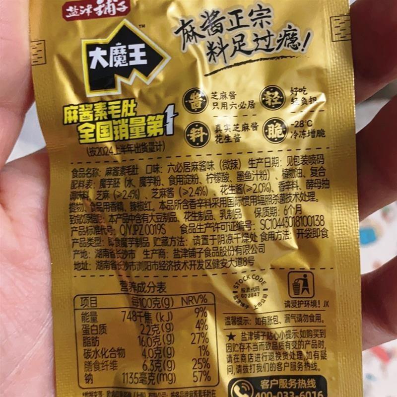 -盐津铺子大魔王魔芋素毛肚178g魔芋爽丝麻酱味火锅解馋休闲零食
