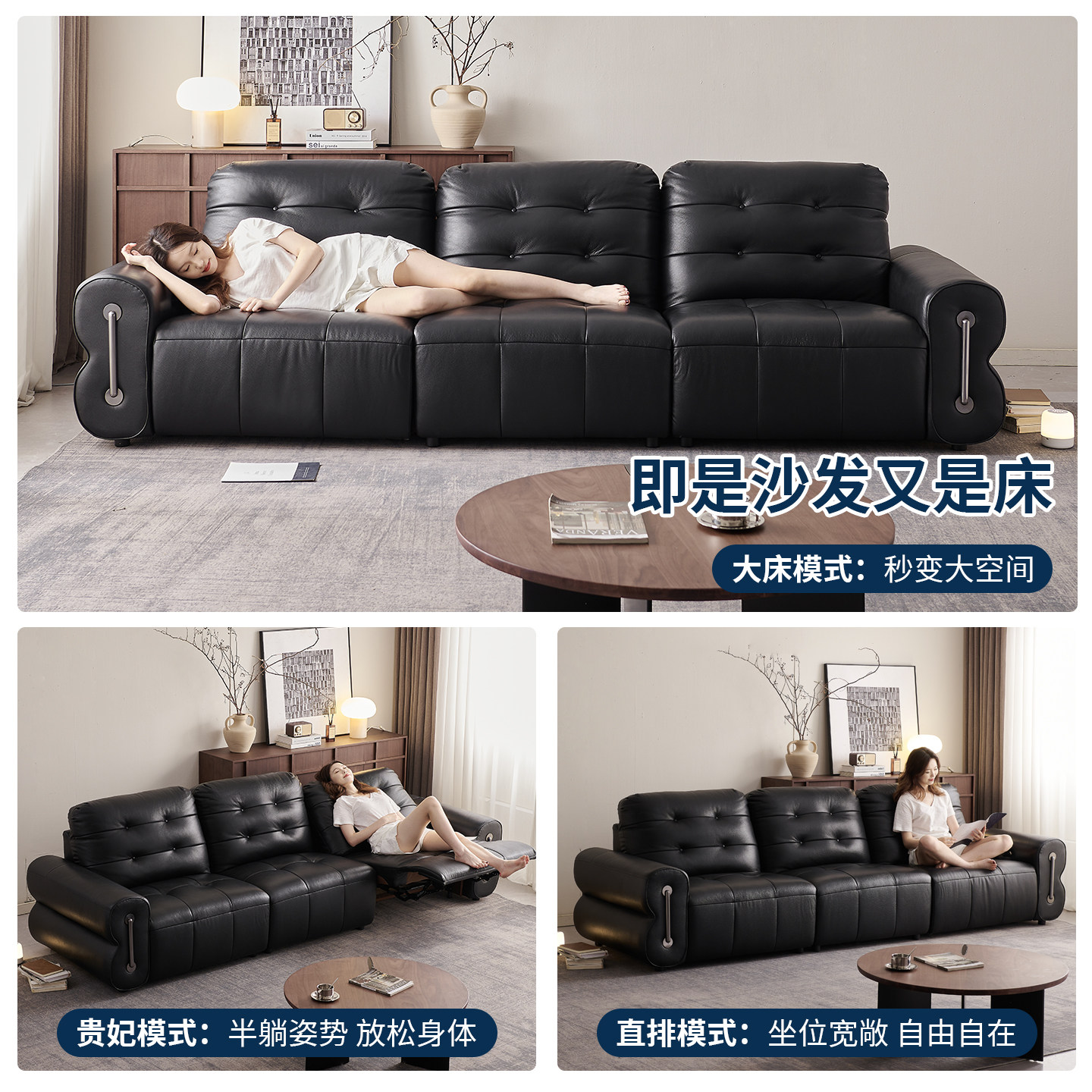 欧派复古风双子星真皮功能沙发
