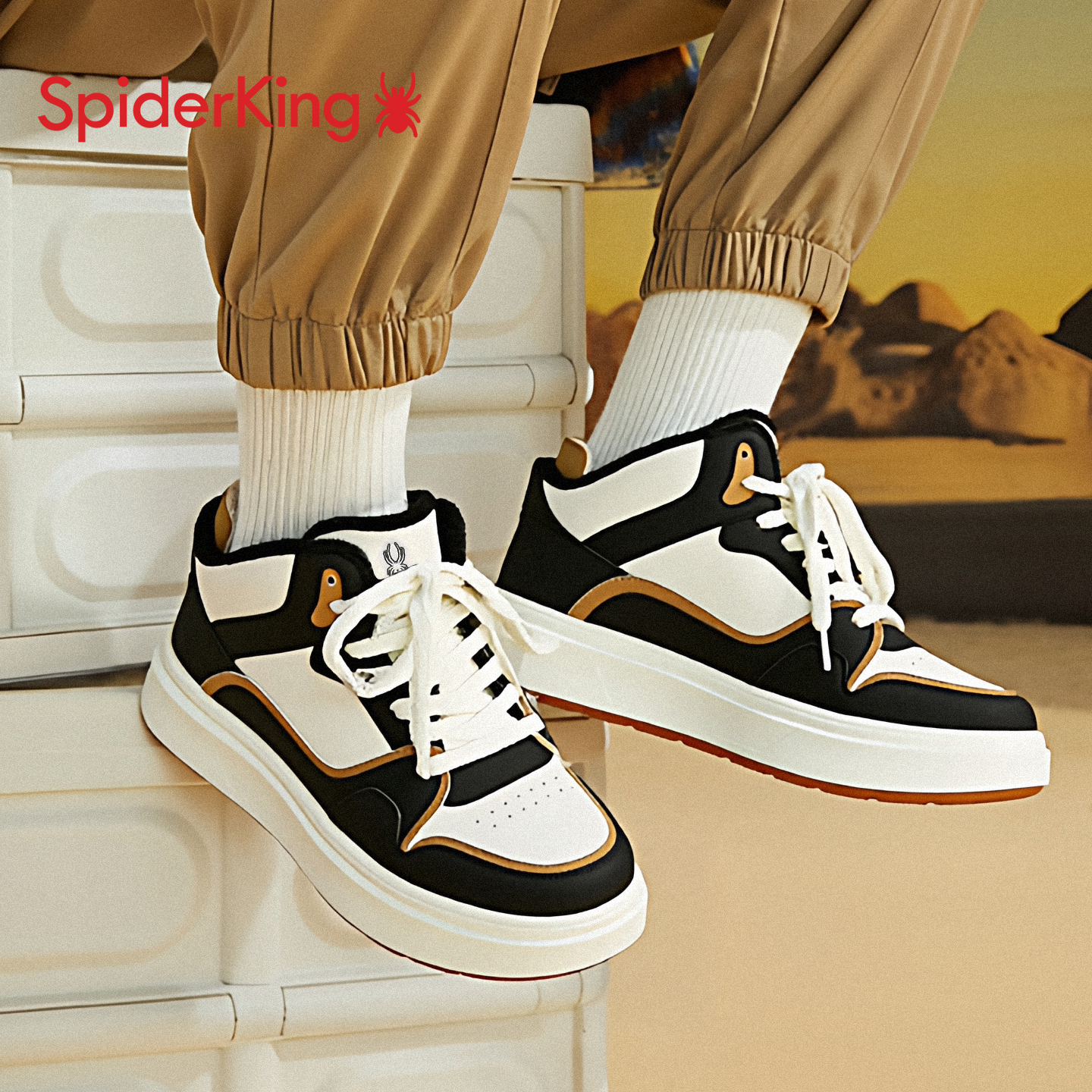 蜘蛛王高帮板鞋男加绒保暖2025款冬季潮流百搭运动休闲鞋子男潮鞋