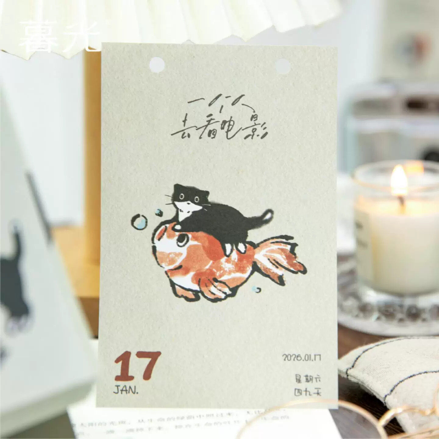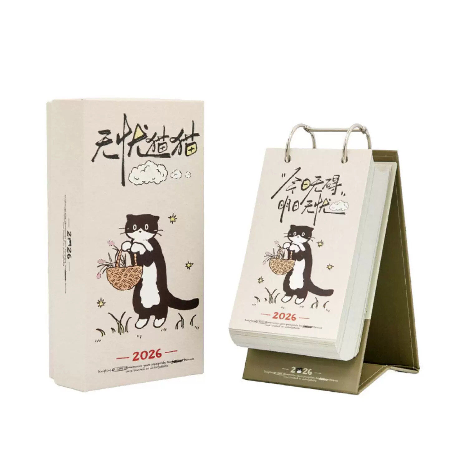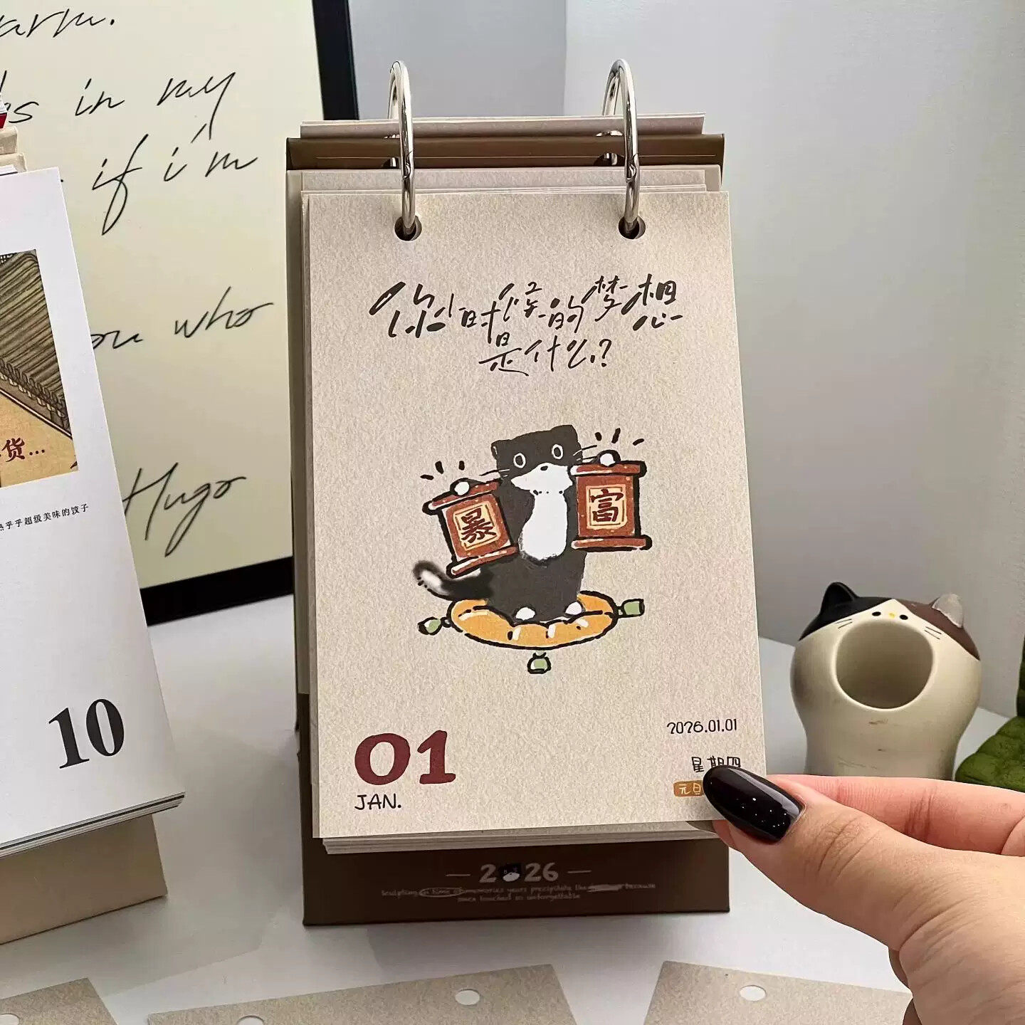 马年日历2026年可爱小猫桌历翻页式月历年历打卡记事工位桌面摆