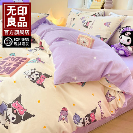 无印良品库洛米100纯棉全棉卡通儿童床上四件套被套床单床笠床品