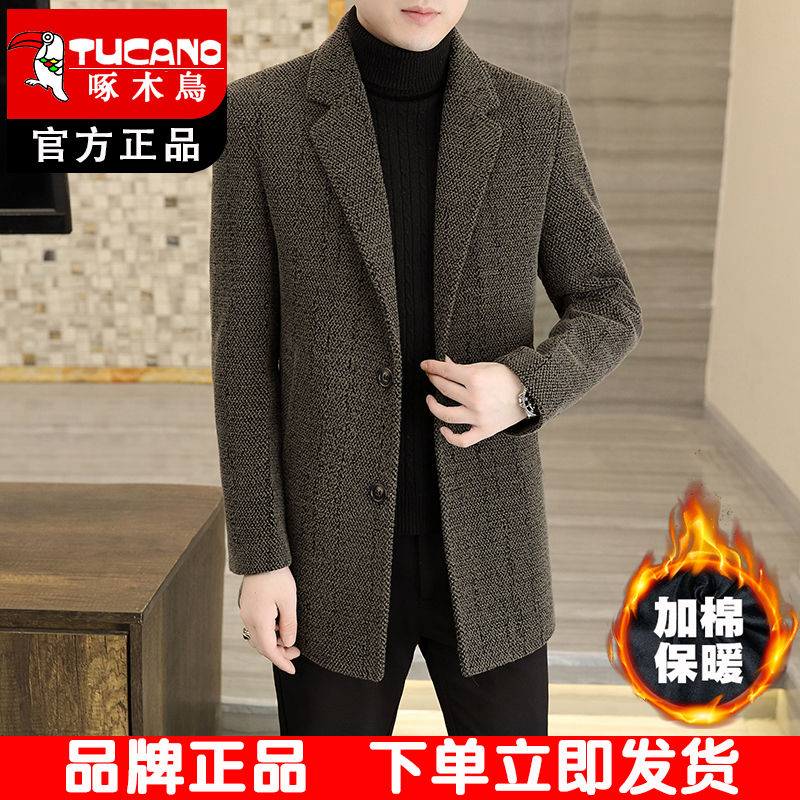 啄木鸟秋冬中长款毛呢大衣男休闲风衣男士大衣毛呢外套男呢子大衣