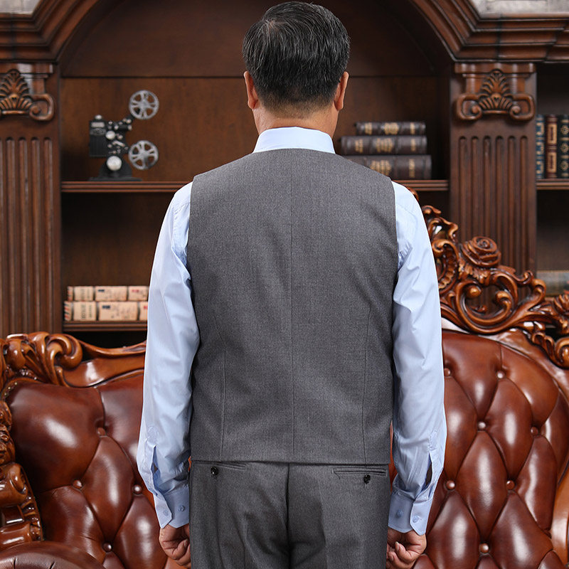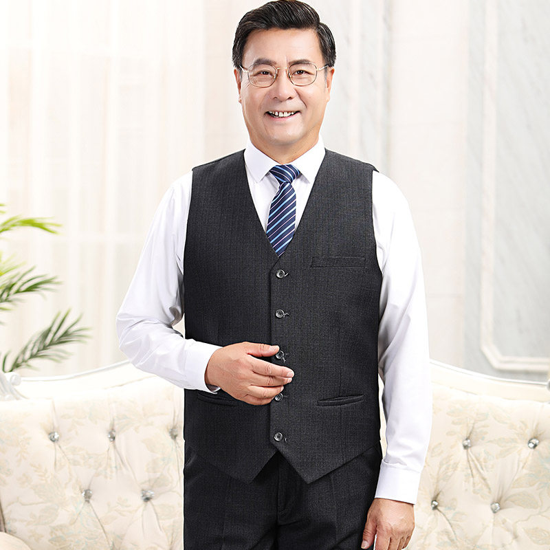 中老年人马夹背心外套中年男士宽松版无袖坎肩爸爸西装马甲春秋款