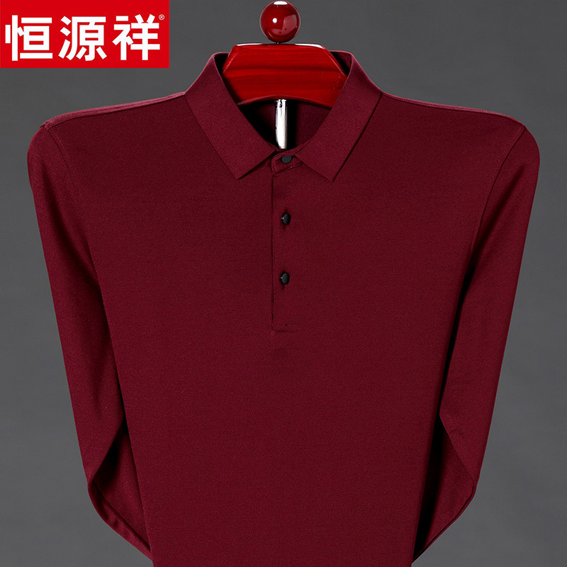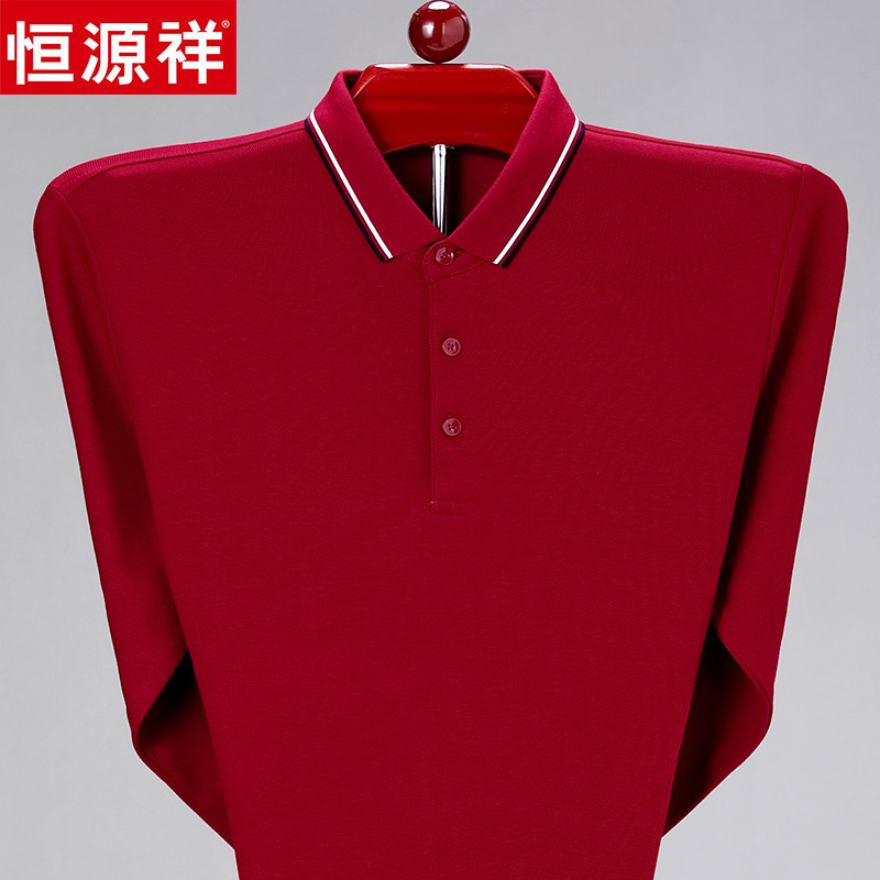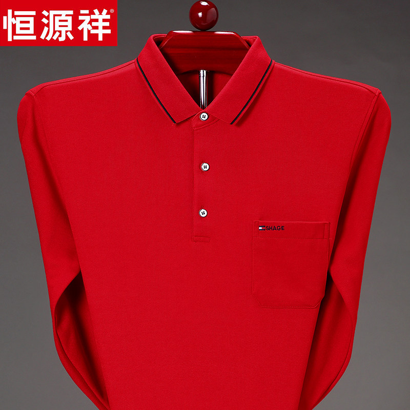 恒源祥红色长袖t恤男士宽松本命年纯棉衣服秋装中年爸爸男装体恤
