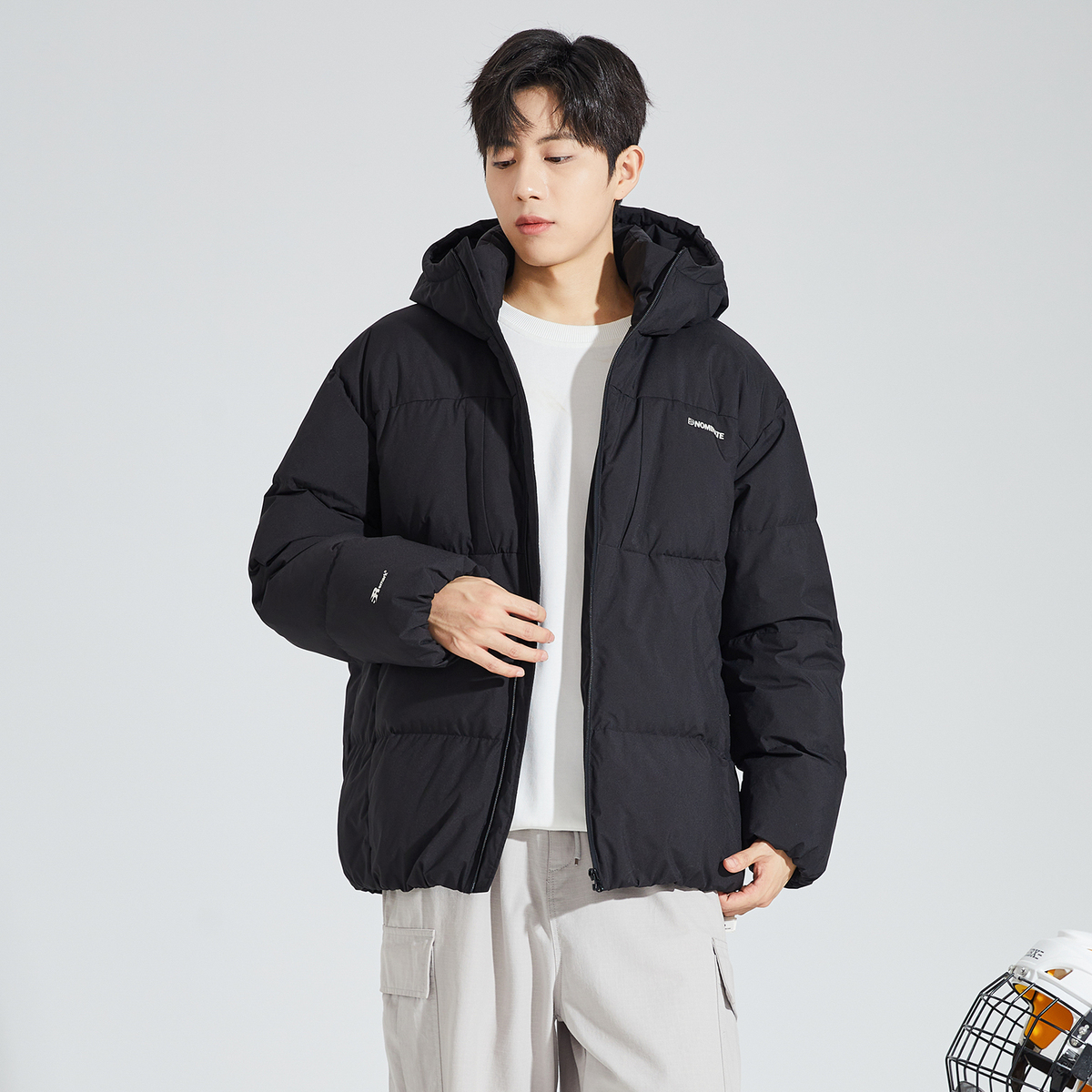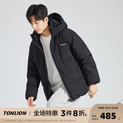 唐狮2024冬季新款男士连帽短款羽绒服拉链款小细节面包服宽松外套