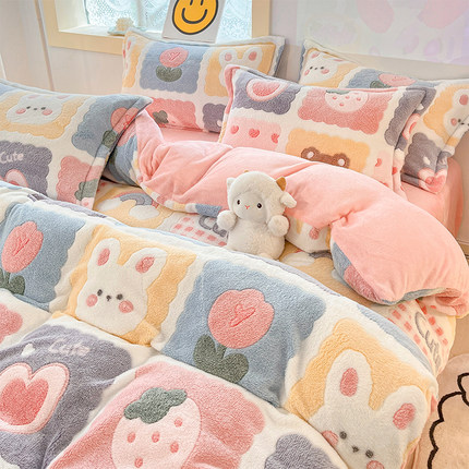 冬季加厚牛奶绒4四件套ins风卡通双面法兰绒被套珊瑚绒床单三件套