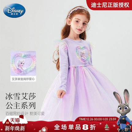 迪士尼童装艾莎公主裙女童连衣裙秋2025新款网纱群儿童裙子秋款女