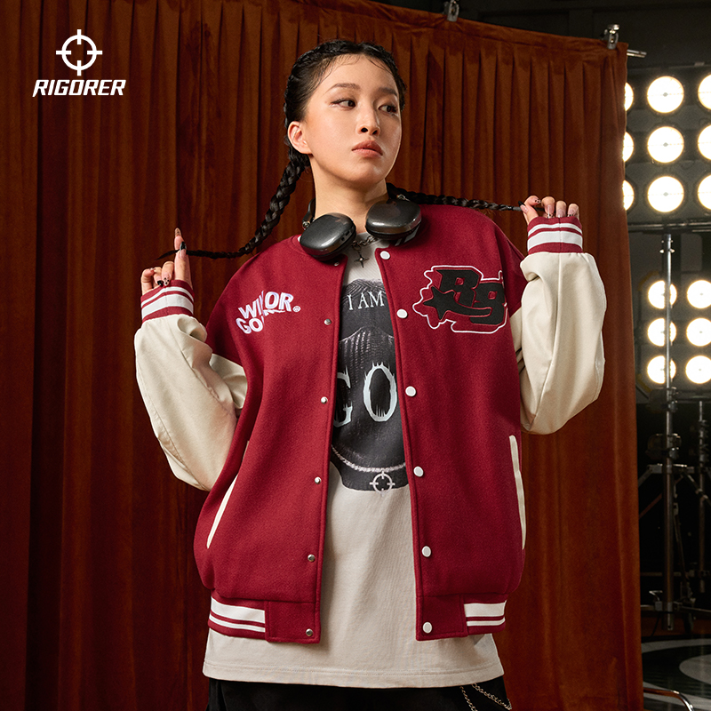 准者棒球服夹克男篮球运动训练PU皮袖2024秋冬款加厚休闲夹克外套