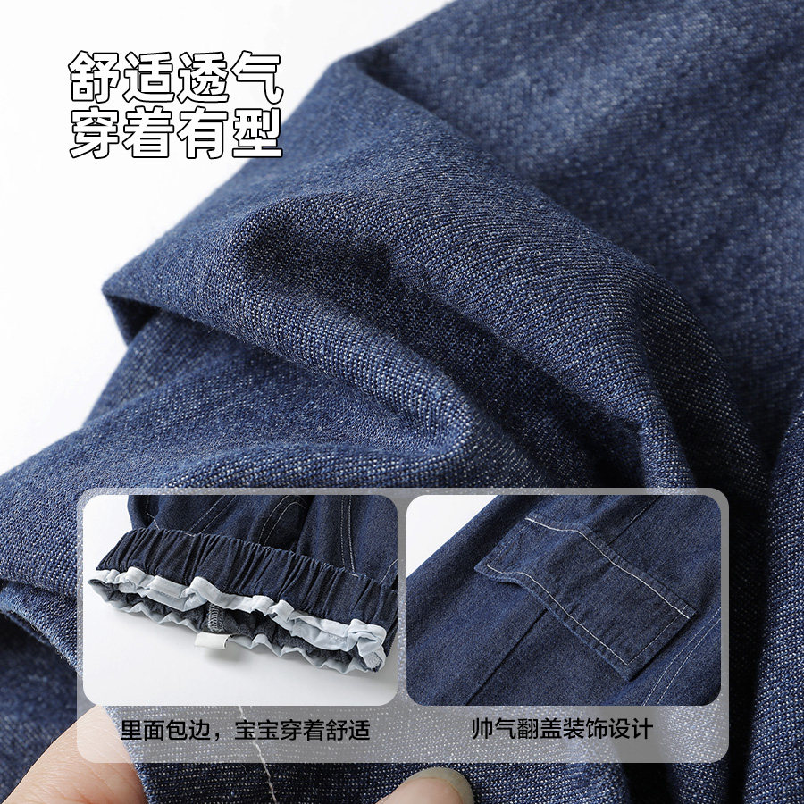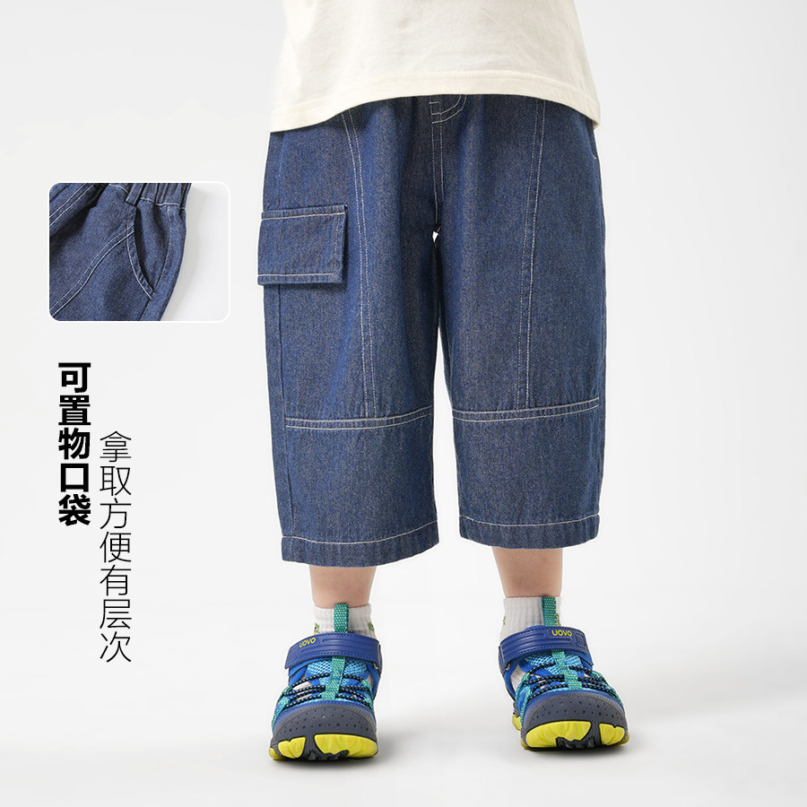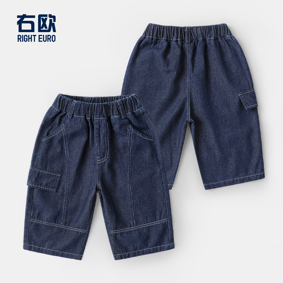 右欧男童女童牛仔七分裤百搭春夏季新款童装纯色宽松儿童休闲裤子