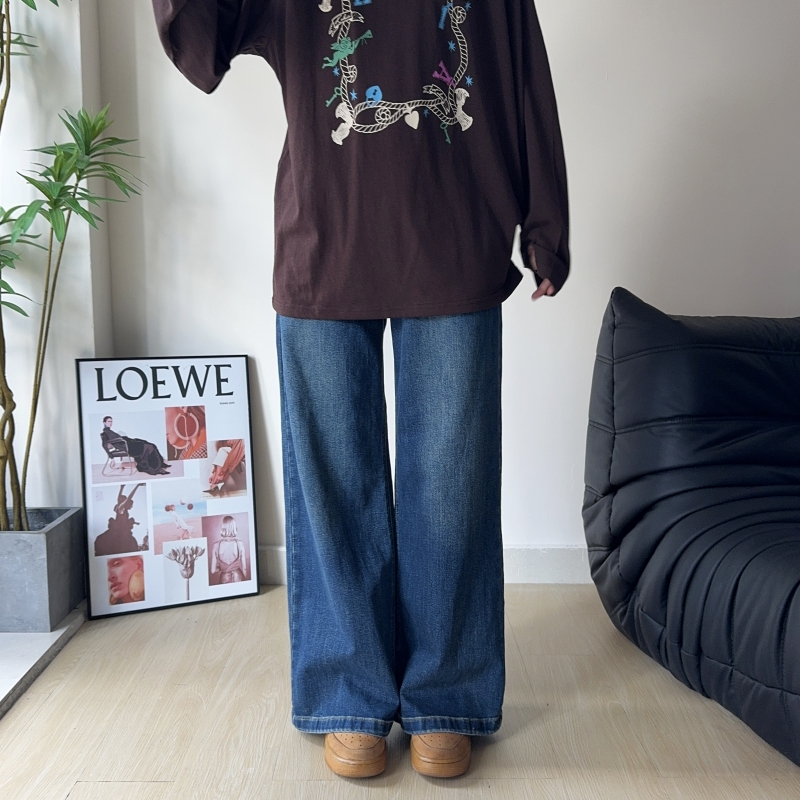 大码高品质阔腿拖地牛仔裤高腰