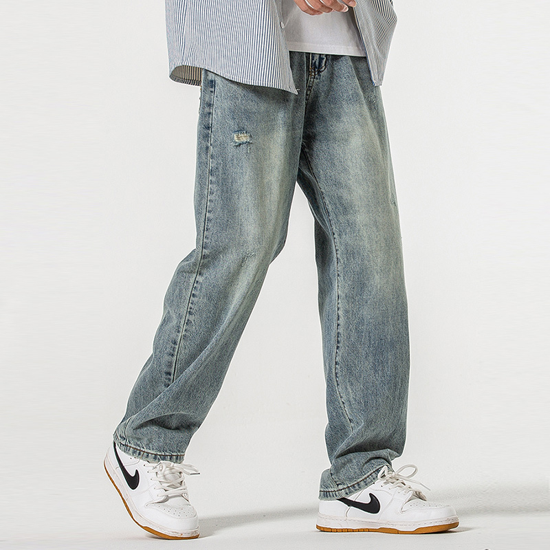 直筒牛仔裤男士破洞美式休闲男裤