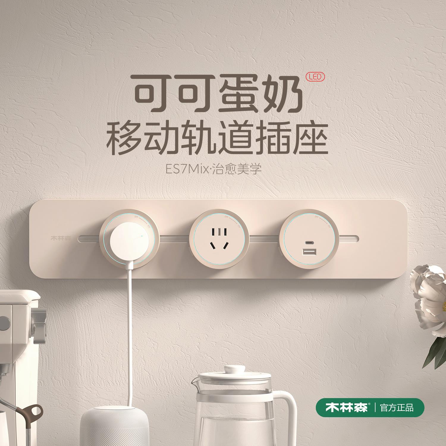 木林森移动轨道插座插排厨房家用明装电源电力插排排插式磁吸滑轨