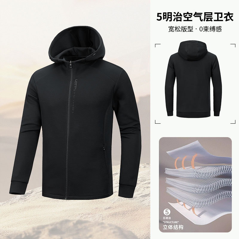 LOTTO乐途男士2025新款秋冬宽松连帽运动外套拉链开衫空气层卫衣