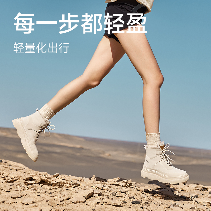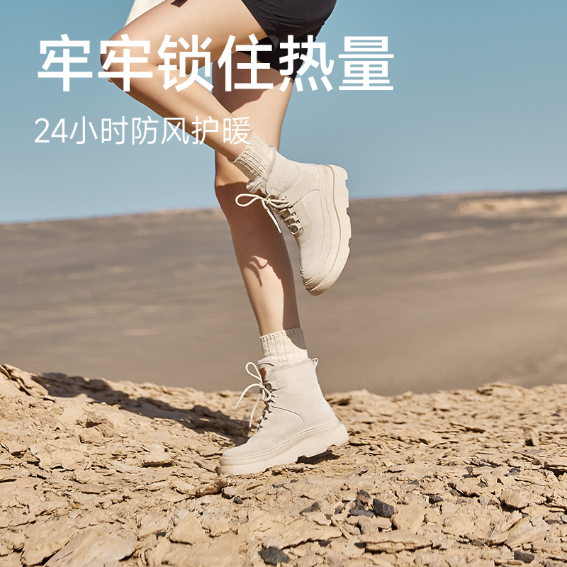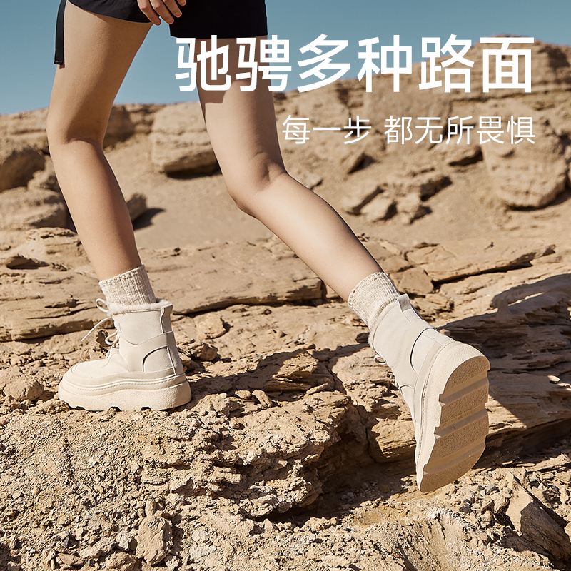 UBZ 厚底防水雪地靴女2025年冬季新款加绒加厚马丁靴短筒东北棉鞋