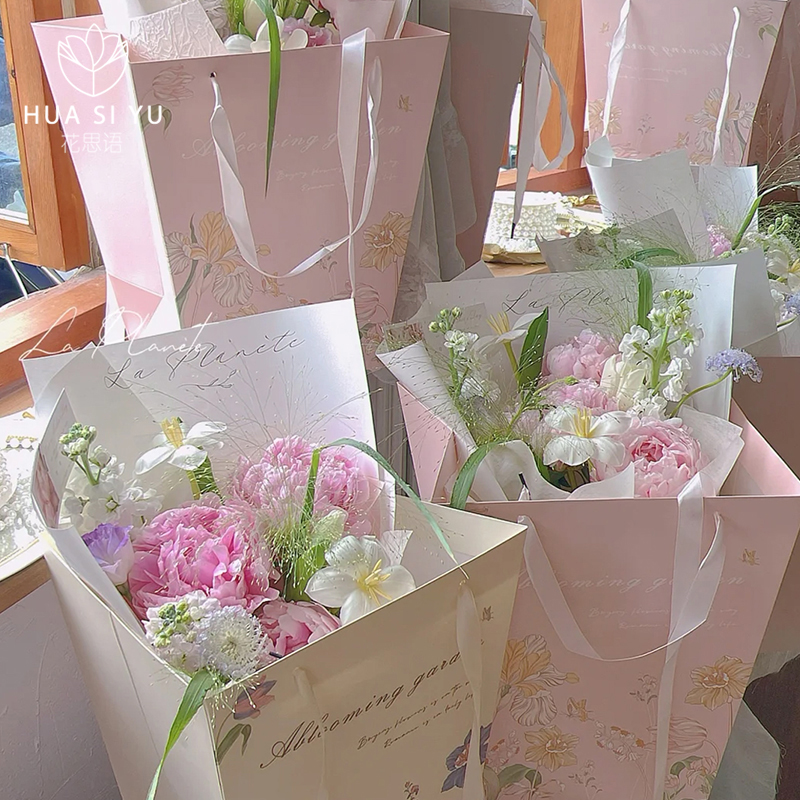 爱在花丛梯形蝴蝶花卉手提袋鲜花束手工花艺diy礼礼品盒包装材料