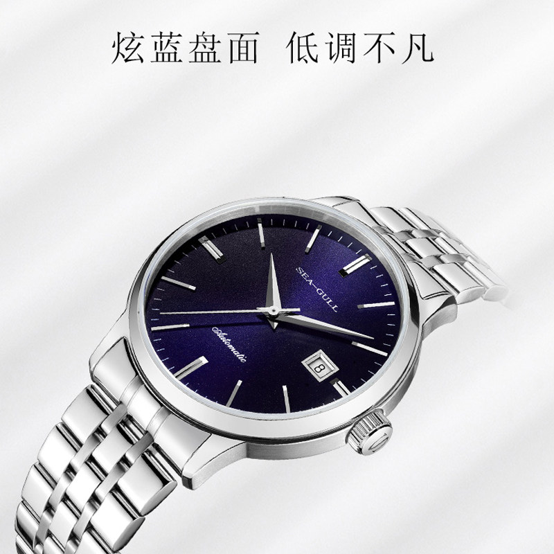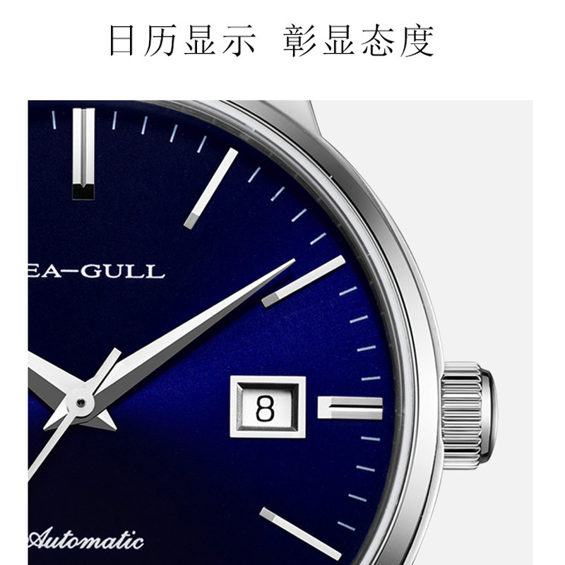 正品海鸥手表男士商务休闲简约钢带日历全自动机械表男表816.362