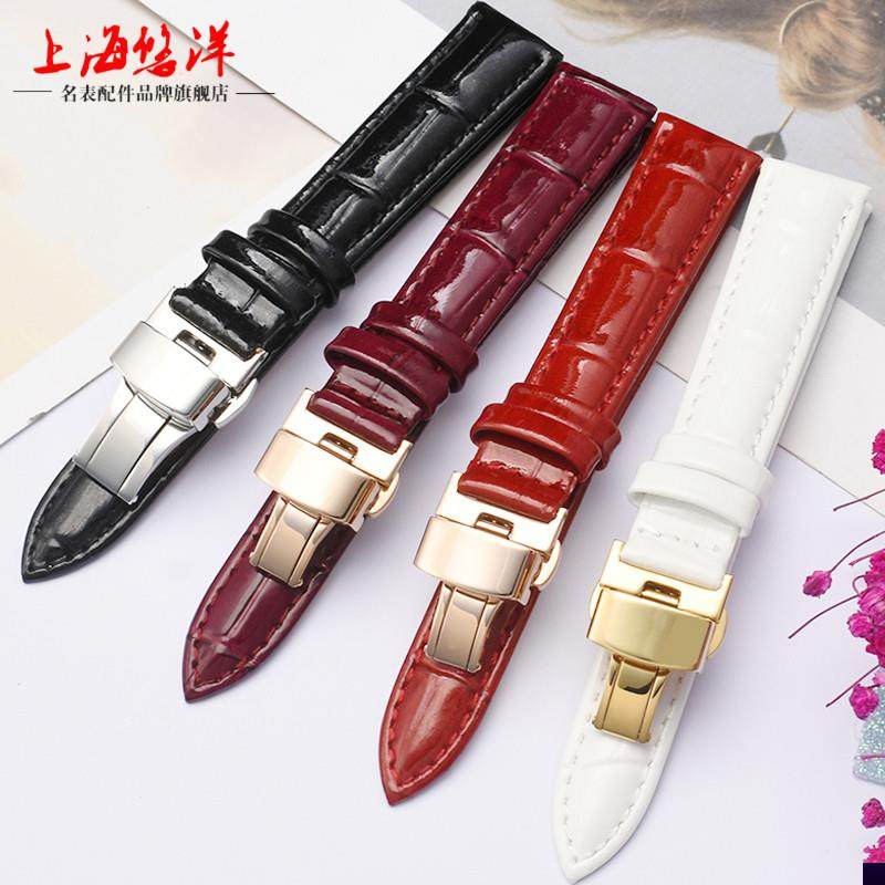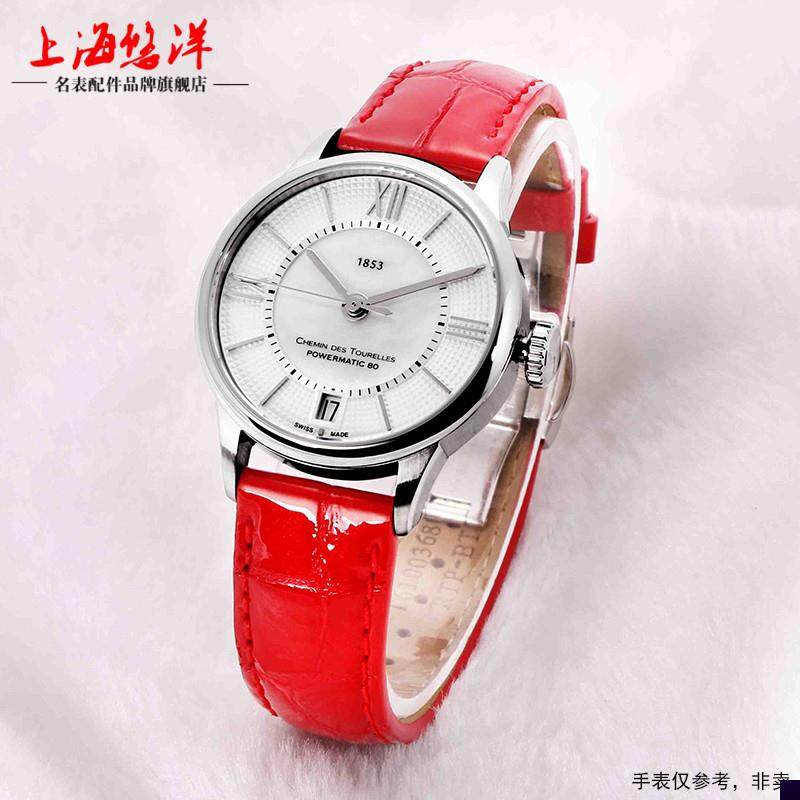 适用于1853天梭T099手表带杜鲁尔系列T099207A女亮红色真皮表链16