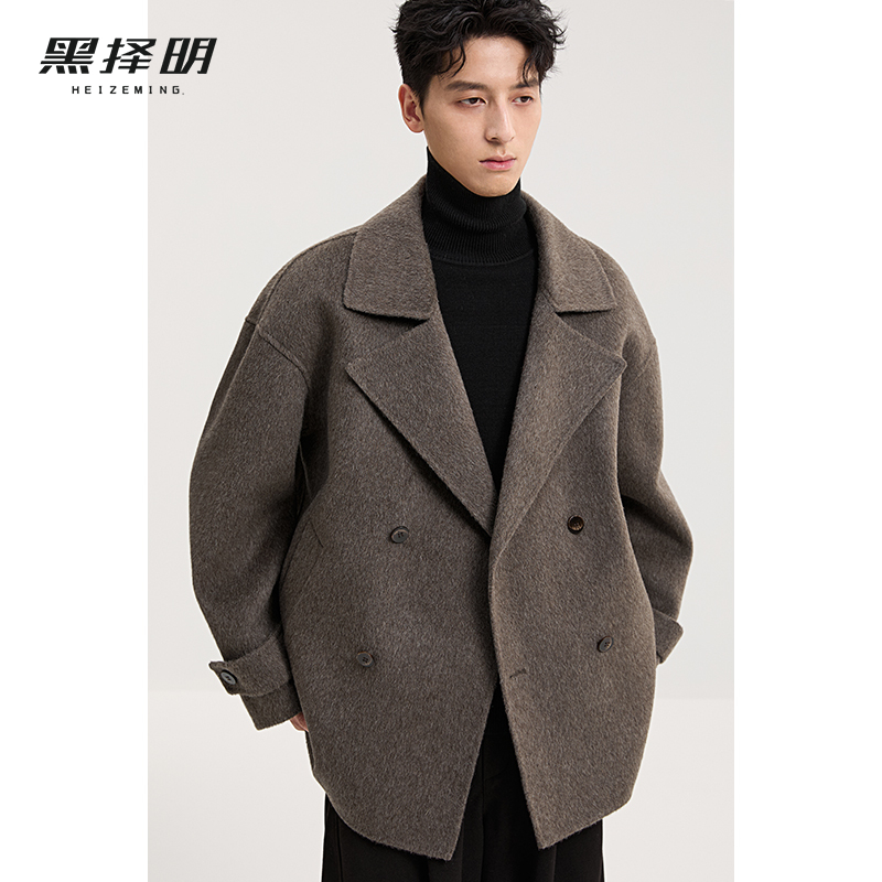 100%绵羊毛黑择明双面呢大衣男士2025秋季新款高端短款呢子外套