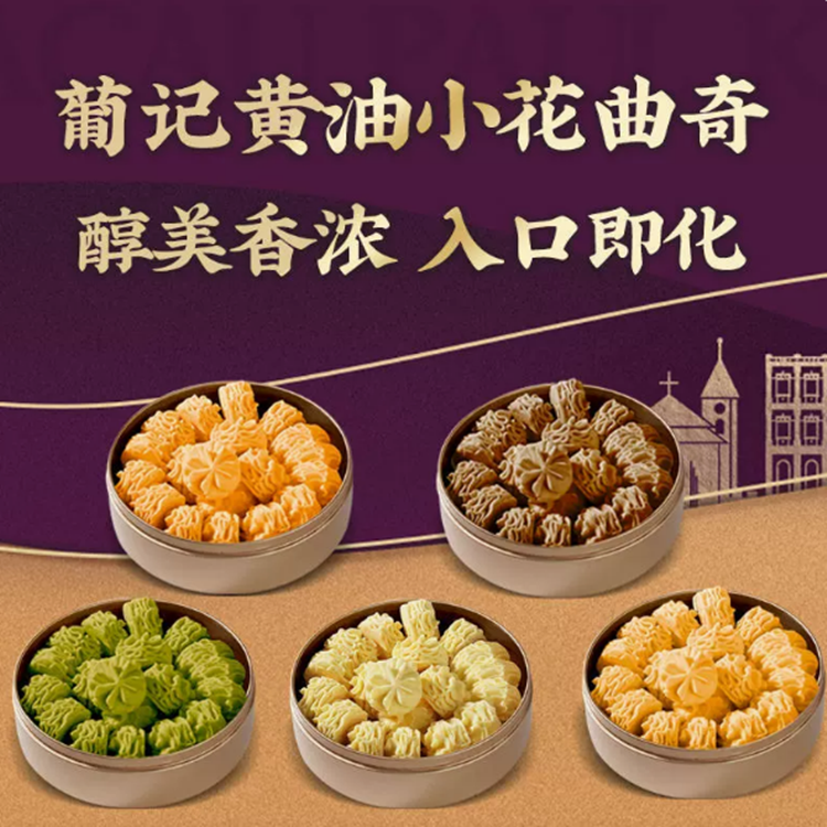 澳门葡记黄油小花曲奇饼干蝴蝶酥普记黄油小花曲奇黄油坚果杏仁饼