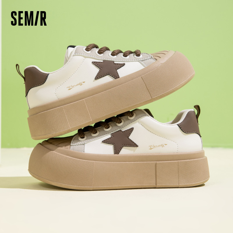Semir女鞋面包鞋2025新款春秋季星星小白鞋休闲百搭厚底增高板鞋