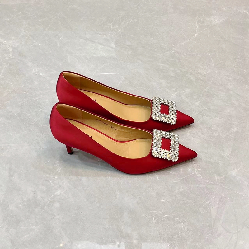 法式水钻扣婚鞋新娘鞋日常配礼服优雅气质高跟鞋时尚尖头浅口女鞋
