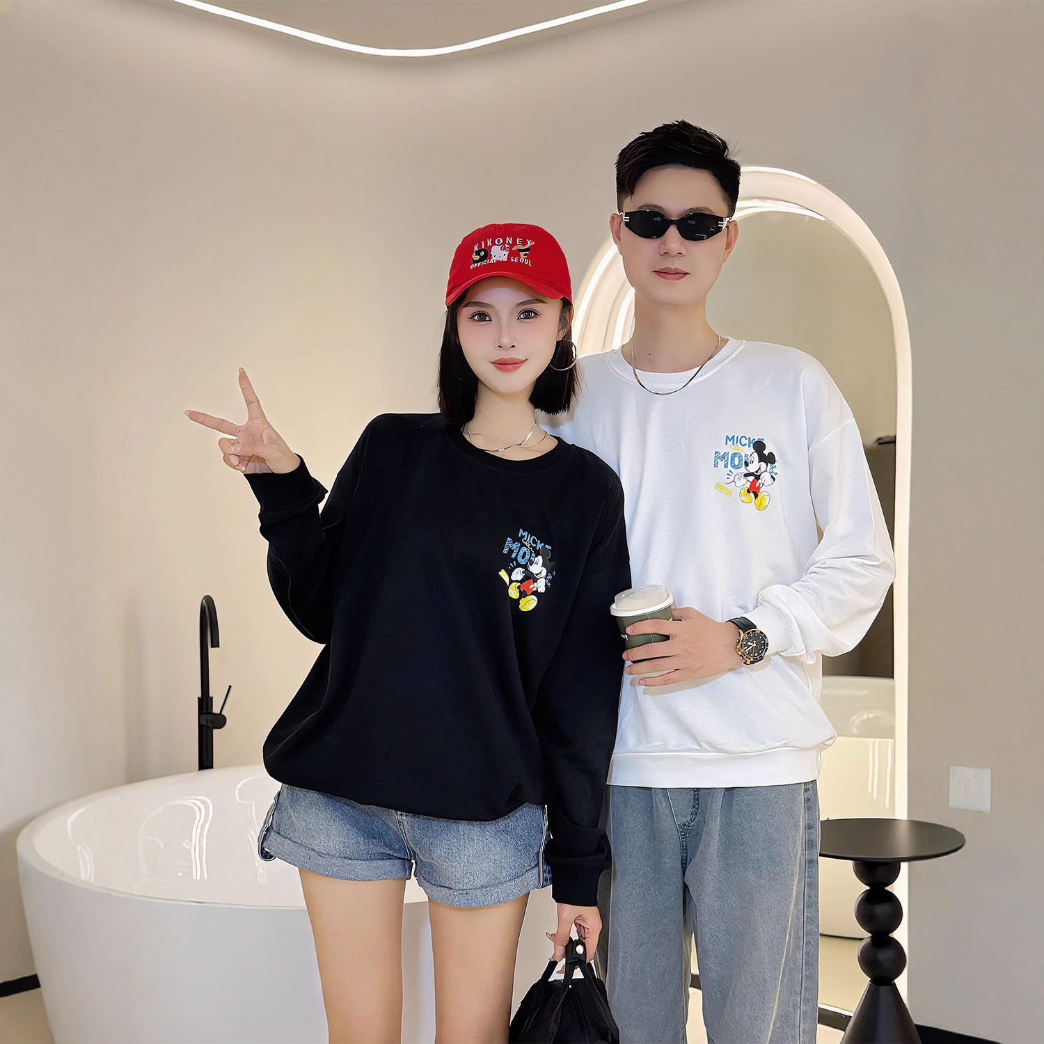卡通亲子装卫衣一家三口秋冬宽松米奇母子母女婴儿加绒上衣全家装