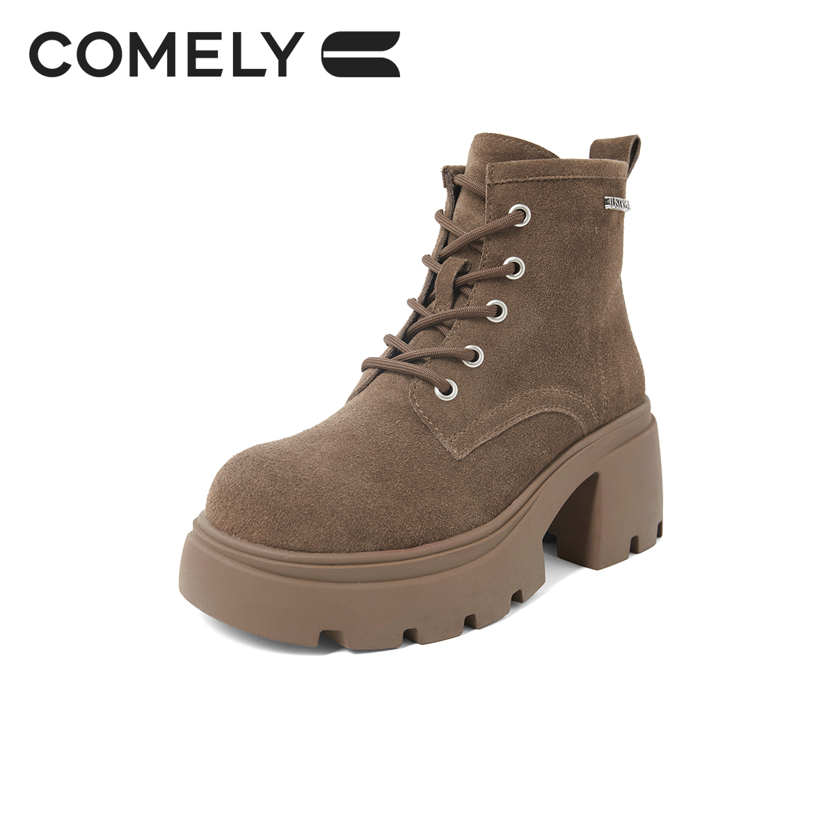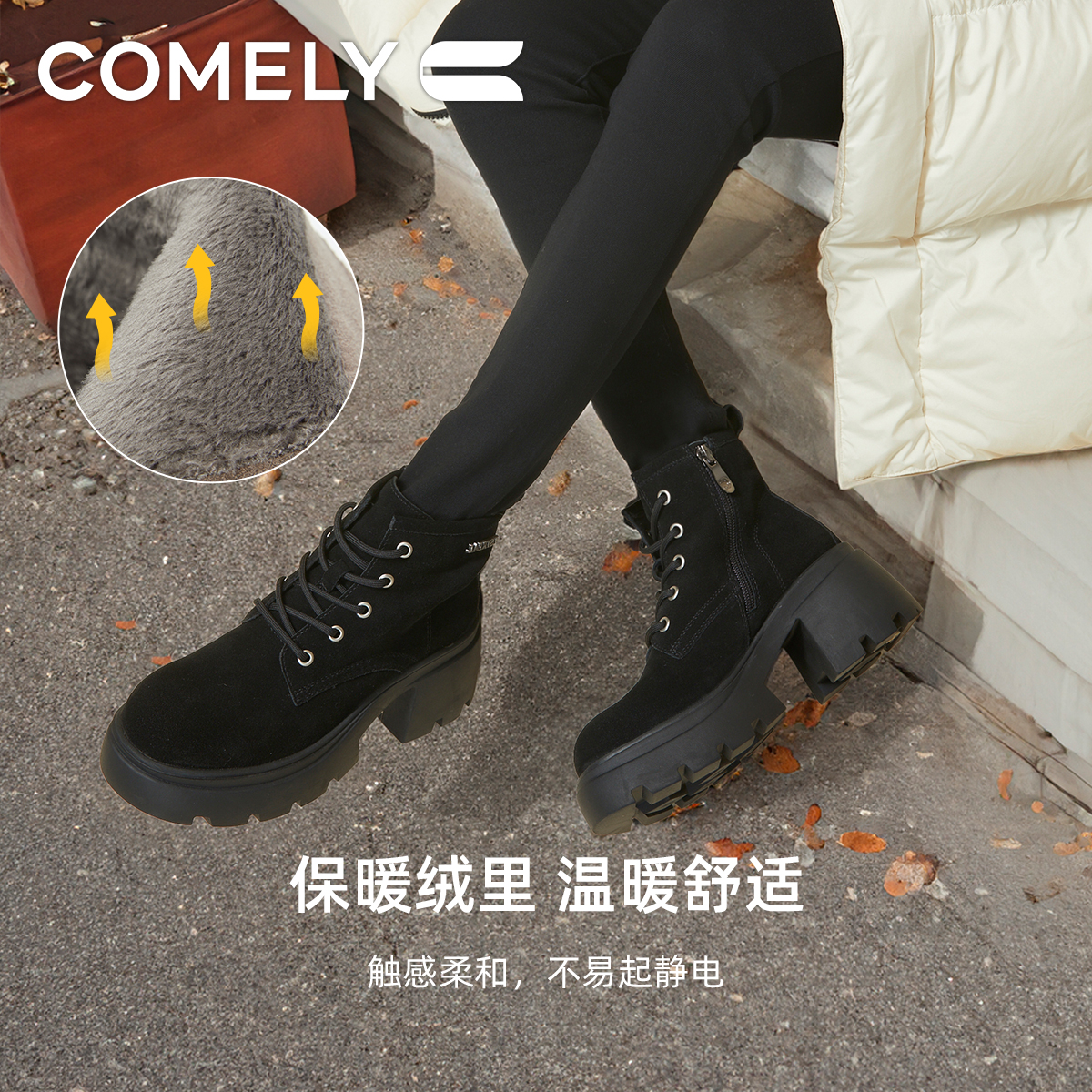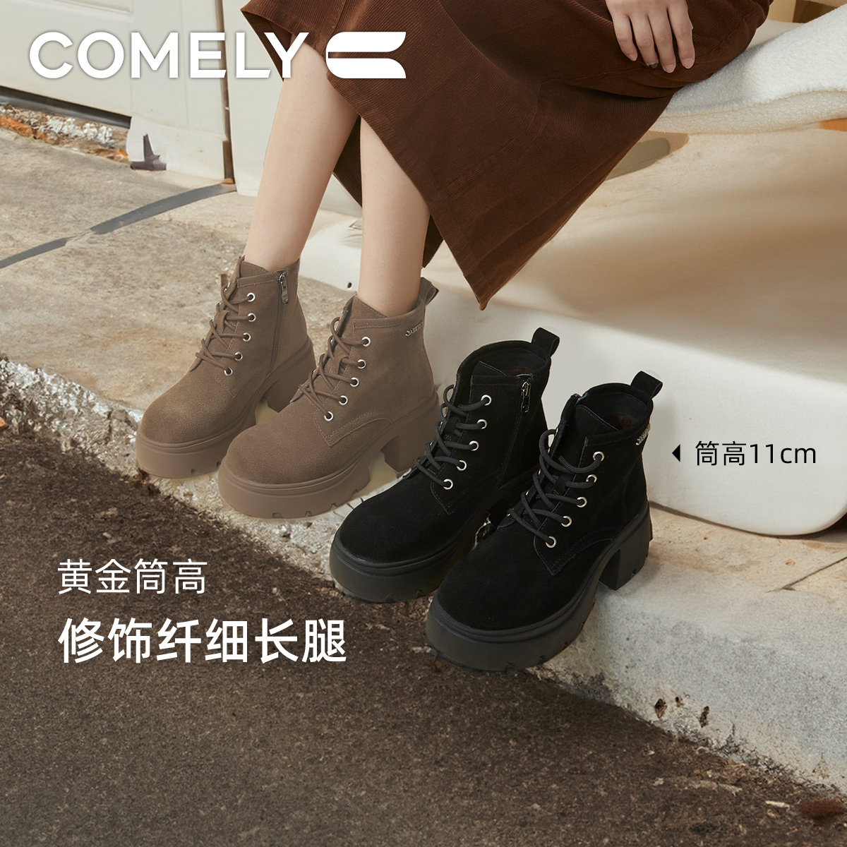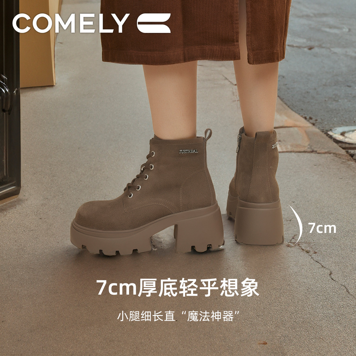 康莉增高马丁靴女秋冬新款英伦风厚底系带粗跟小个子炸街加绒短靴