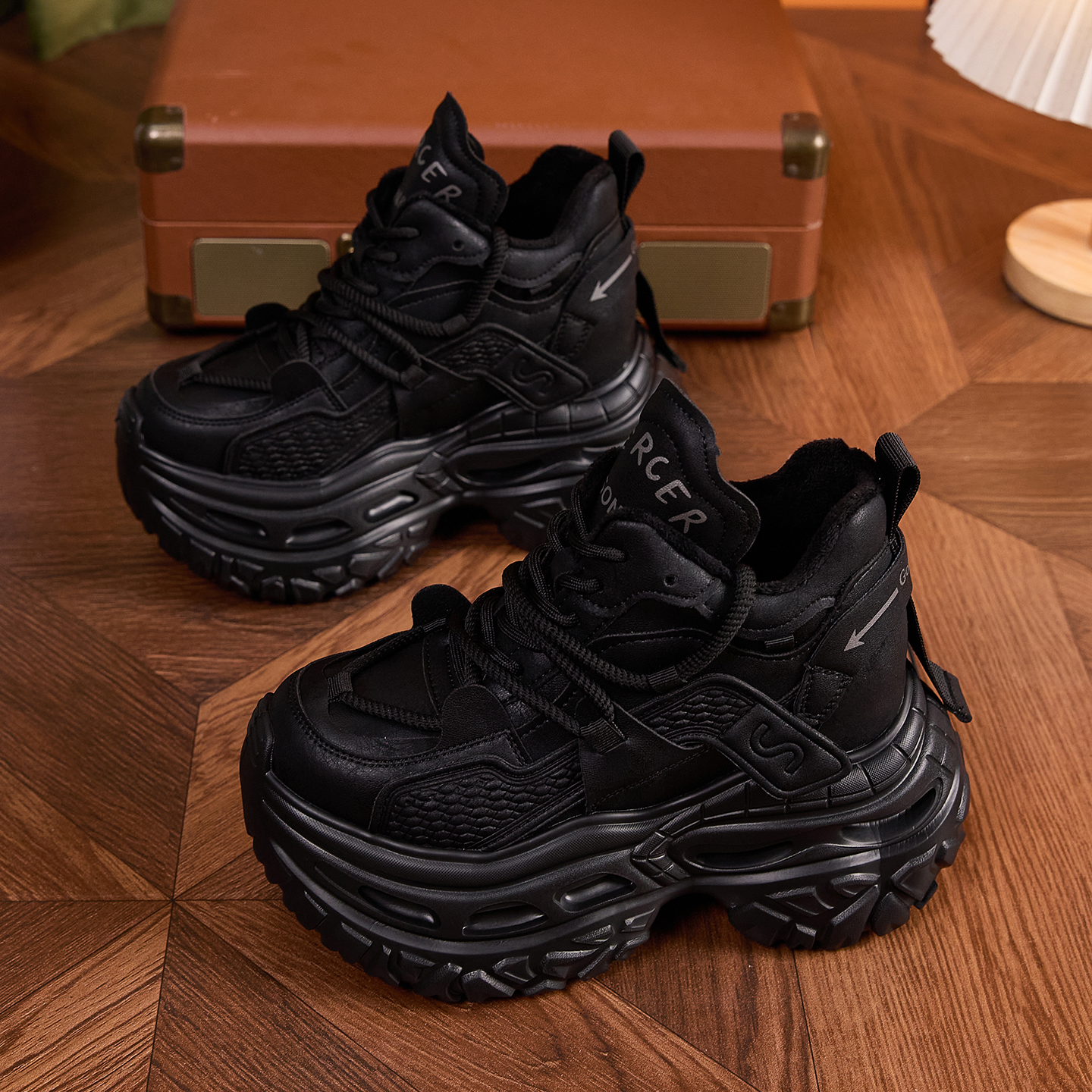 厚底高帮小白鞋女2025新款秋冬加绒保暖棉鞋内增高休闲运动老爹鞋