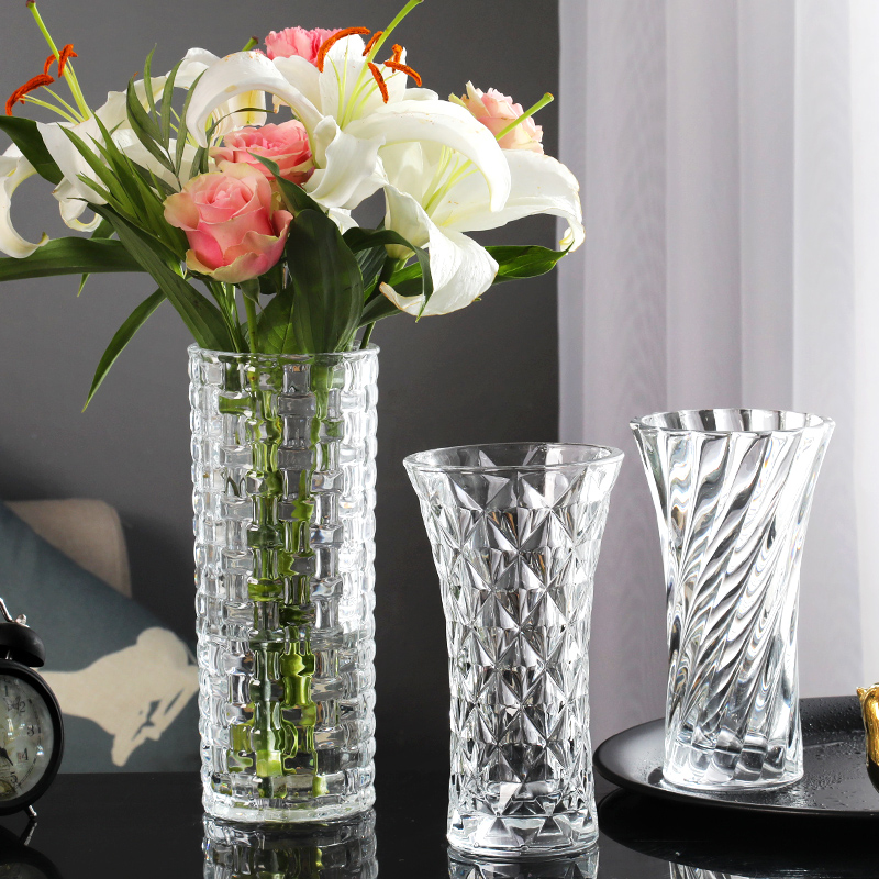 大号加厚欧式玻璃花瓶透明水培富贵竹百合花瓶客厅装饰插花瓶摆件