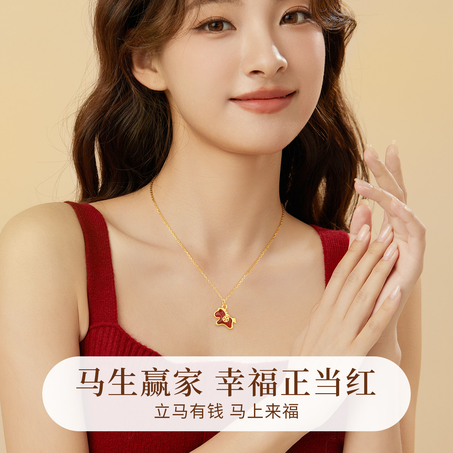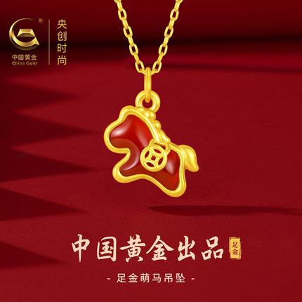 中国黄金央创本命年黄金项链女款足金小马吊坠马年纯金生肖礼物送