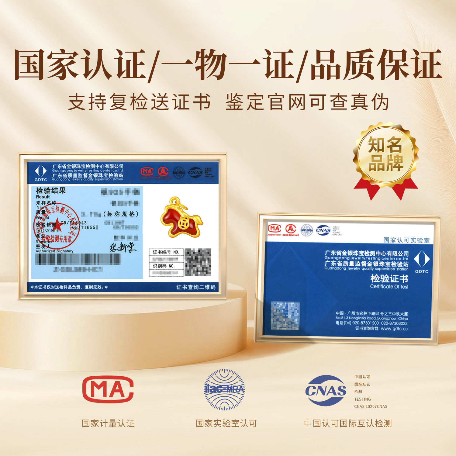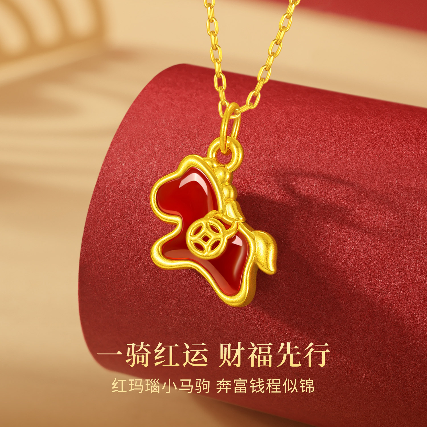 中国黄金出品999足金小马吊坠