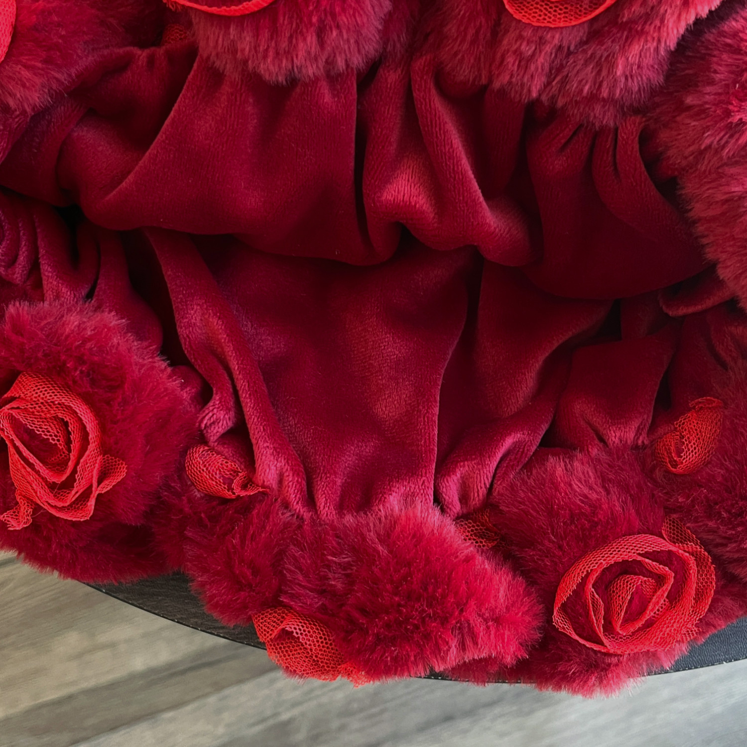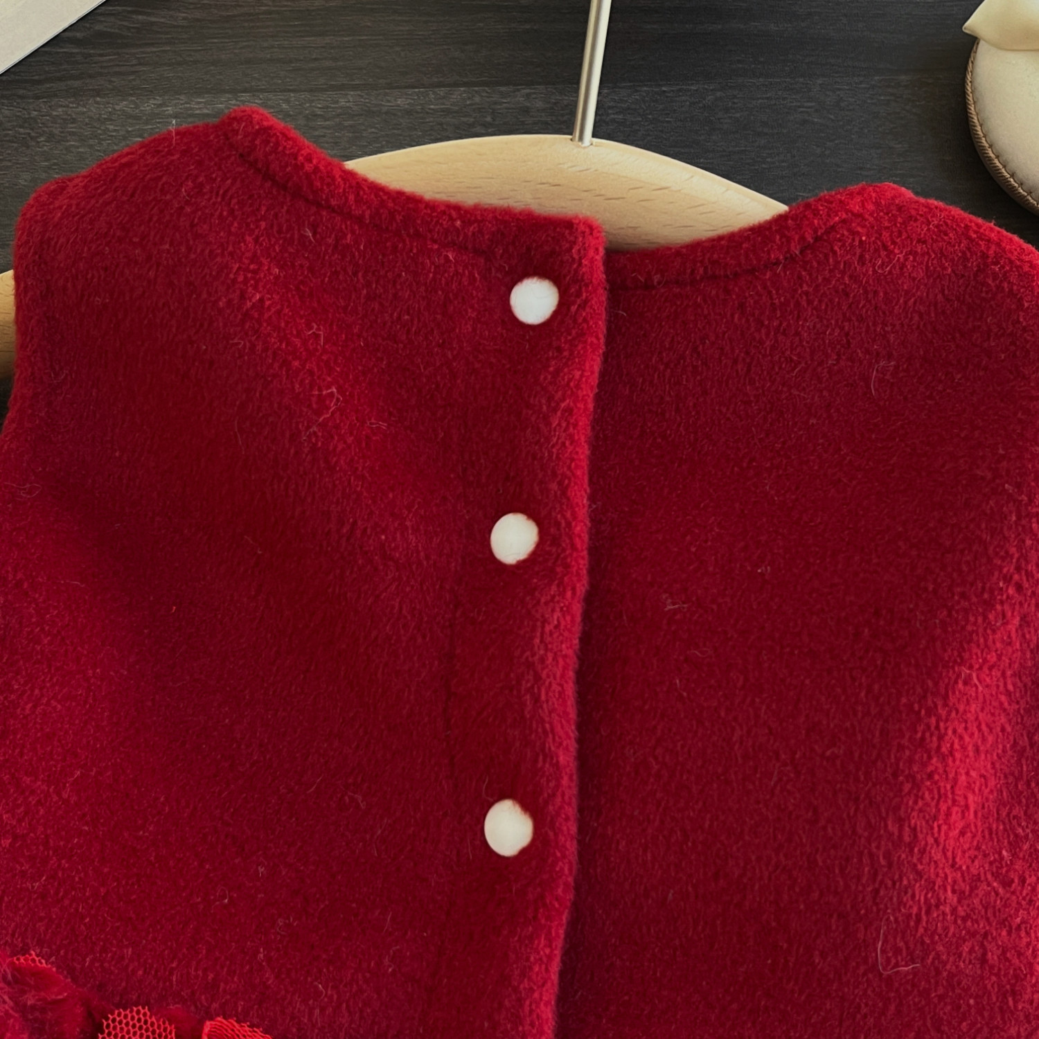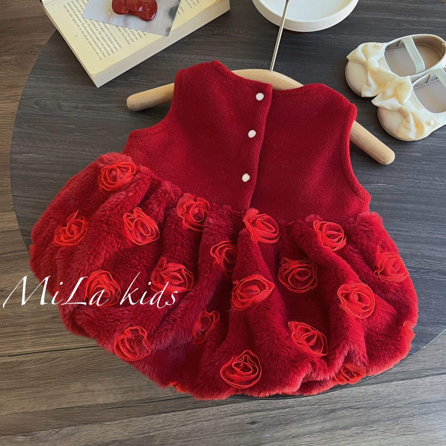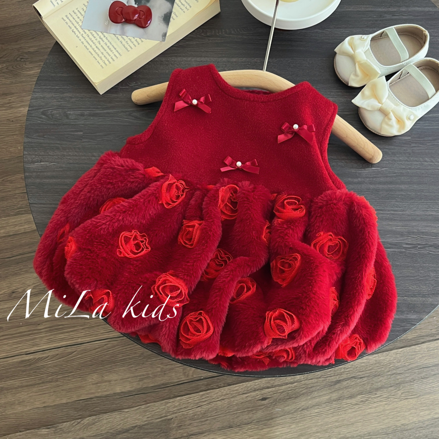 宝宝加绒连衣裙冬装女童背心花苞裙婴儿新年衣服周岁红色礼服裙子