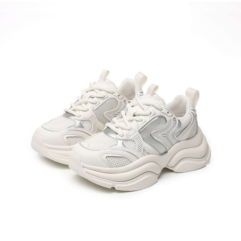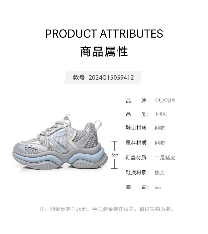 杰豪女鞋真皮网面老爹鞋内增高