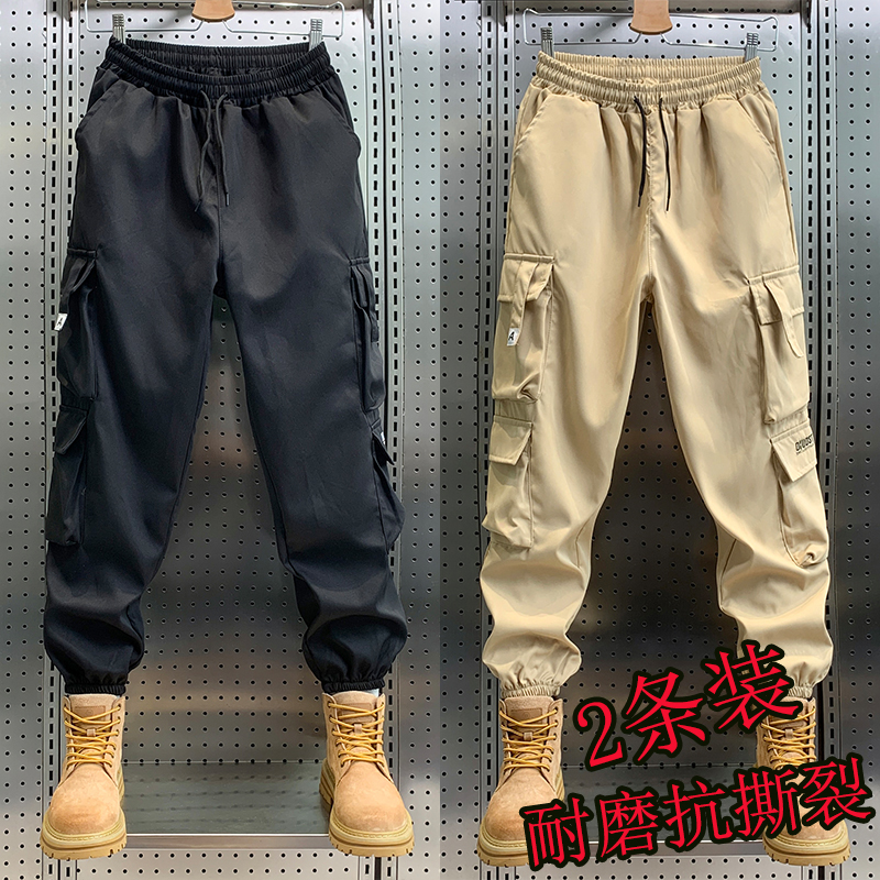 春秋常规九分工装裤男潮牌宽松束脚哈伦裤男士2024耐磨机能休闲裤
